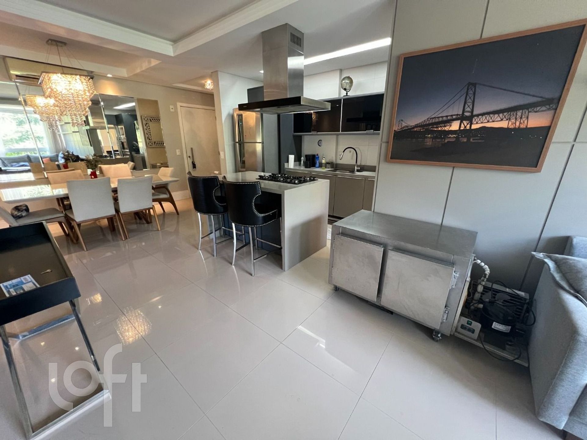 Amplo apartamento mobiliado e equipado com vaga para 2 carros, hobby box , sacada com churrasqueira e vista para o mar e para a ponte Hercílio Luz! Agende uma visita!