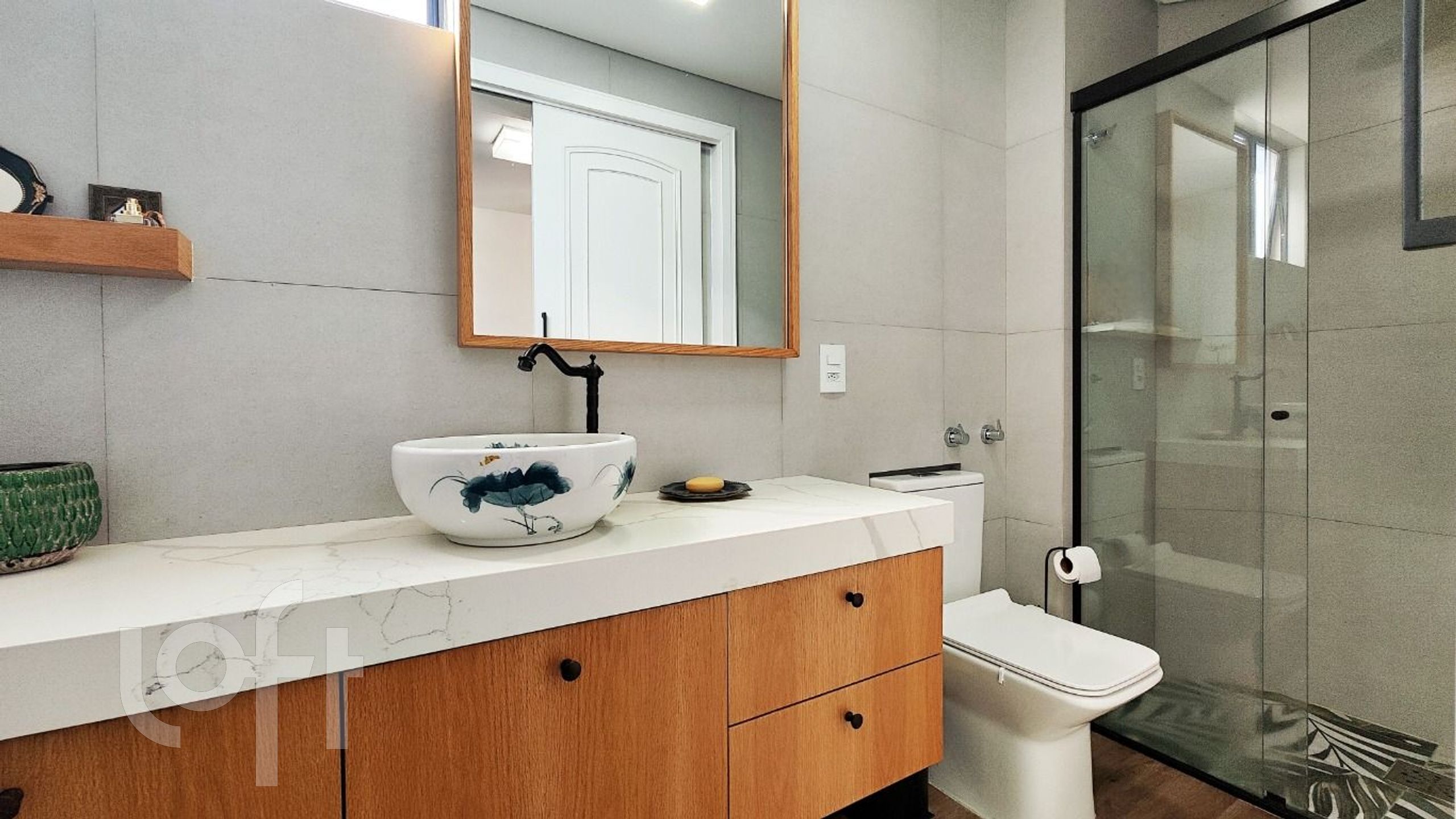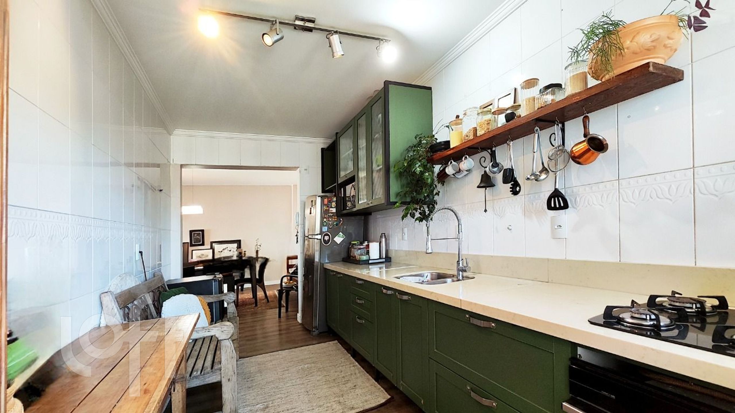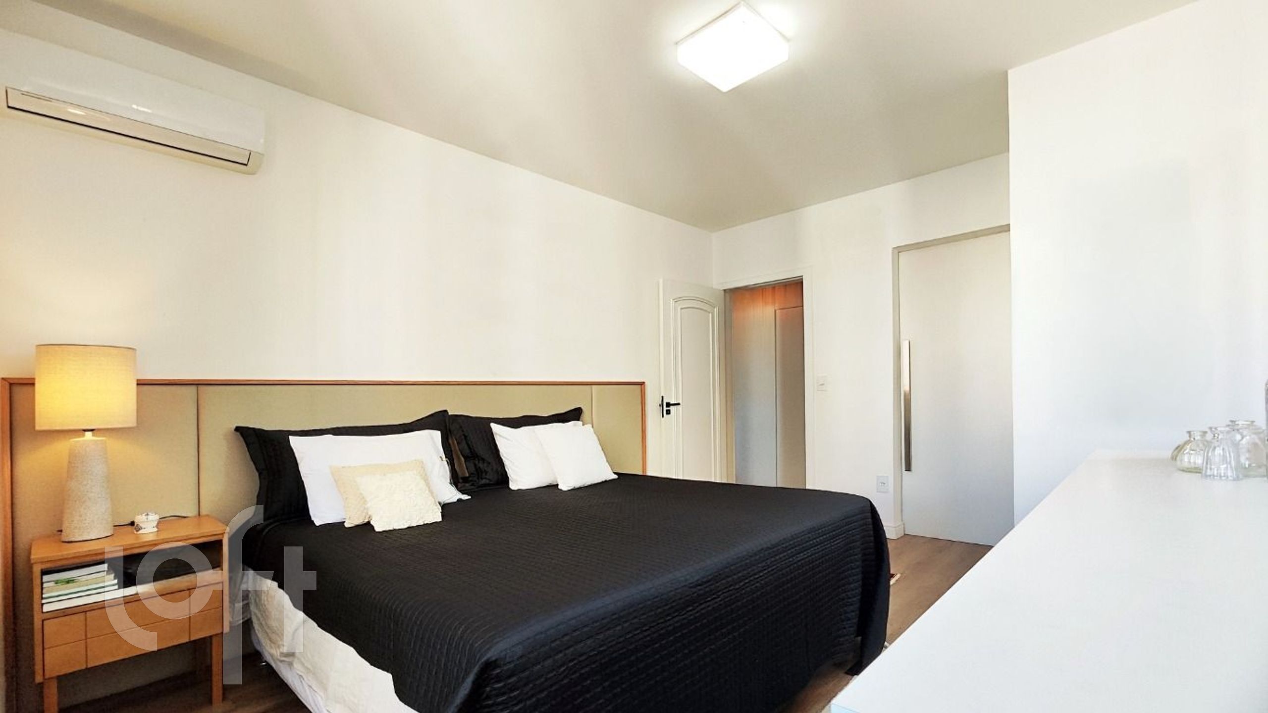 O apartamento é semimobiliado, com armários planejados de alta qualidade na cozinha, área de serviço, dormitórios e closet. Conta também com ar-condicionado split, encanamento para água quente e espera para banheira de hidromassagem. O imóvel possui duas vagas de garagem.