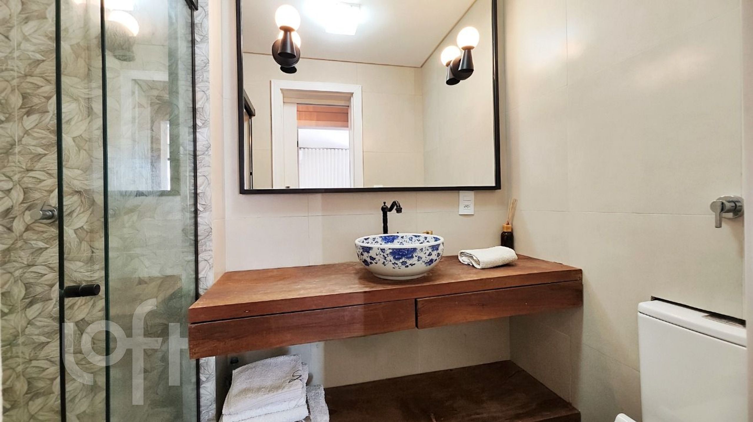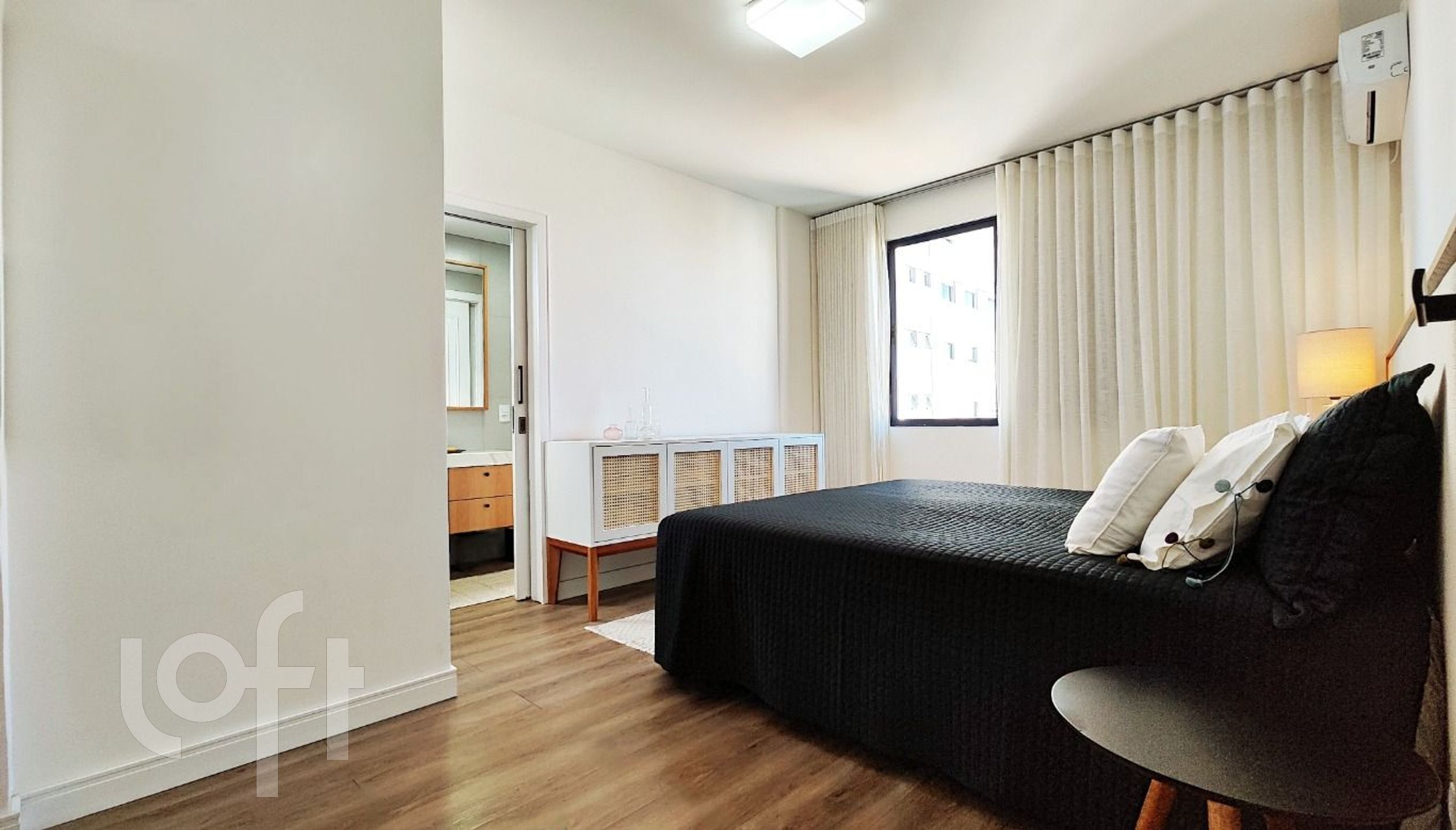 O apartamento é semimobiliado, com armários planejados de alta qualidade na cozinha, área de serviço, dormitórios e closet. Conta também com ar-condicionado split, encanamento para água quente e espera para banheira de hidromassagem. O imóvel possui duas vagas de garagem.