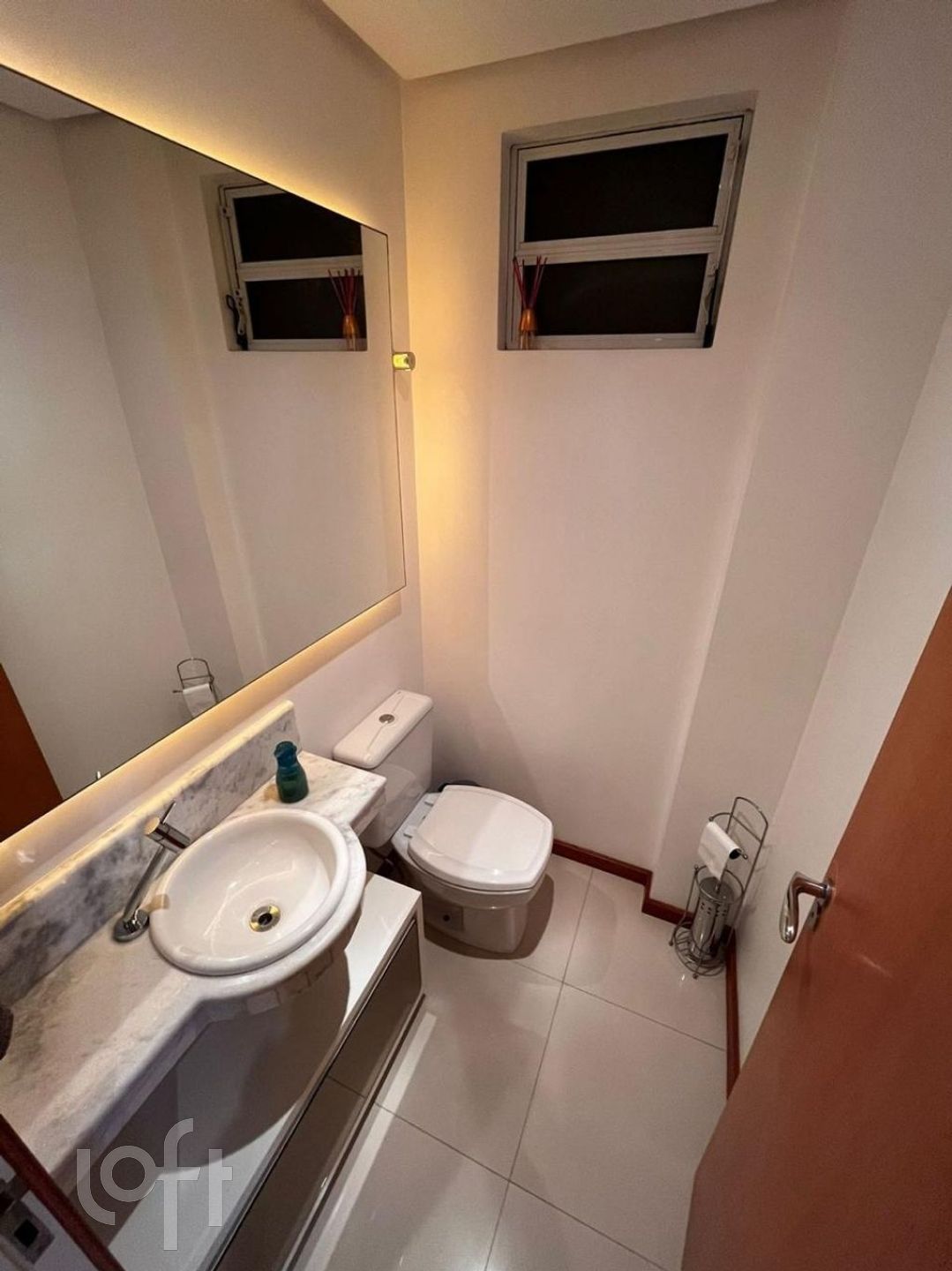 O apartamento possui também dependência de empregada com banheiro exclusivo, atendendo a diversas necessidades do dia a dia. São 3 banheiros no total, incluindo um lavabo que agrega sofisticação ao ambiente.