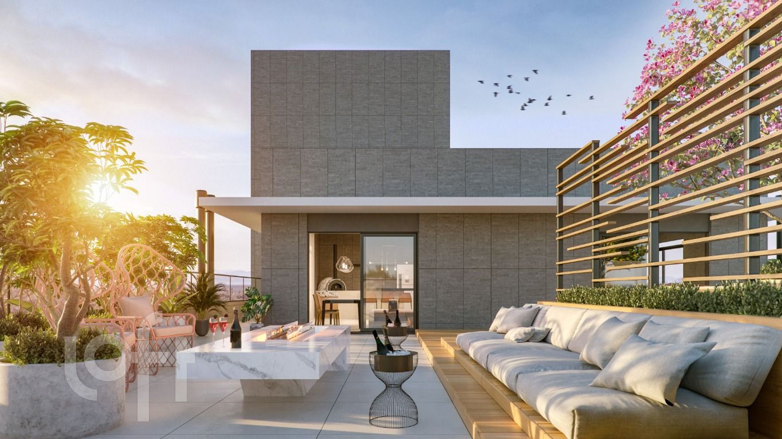 Vista para parque e Pôr do Sol