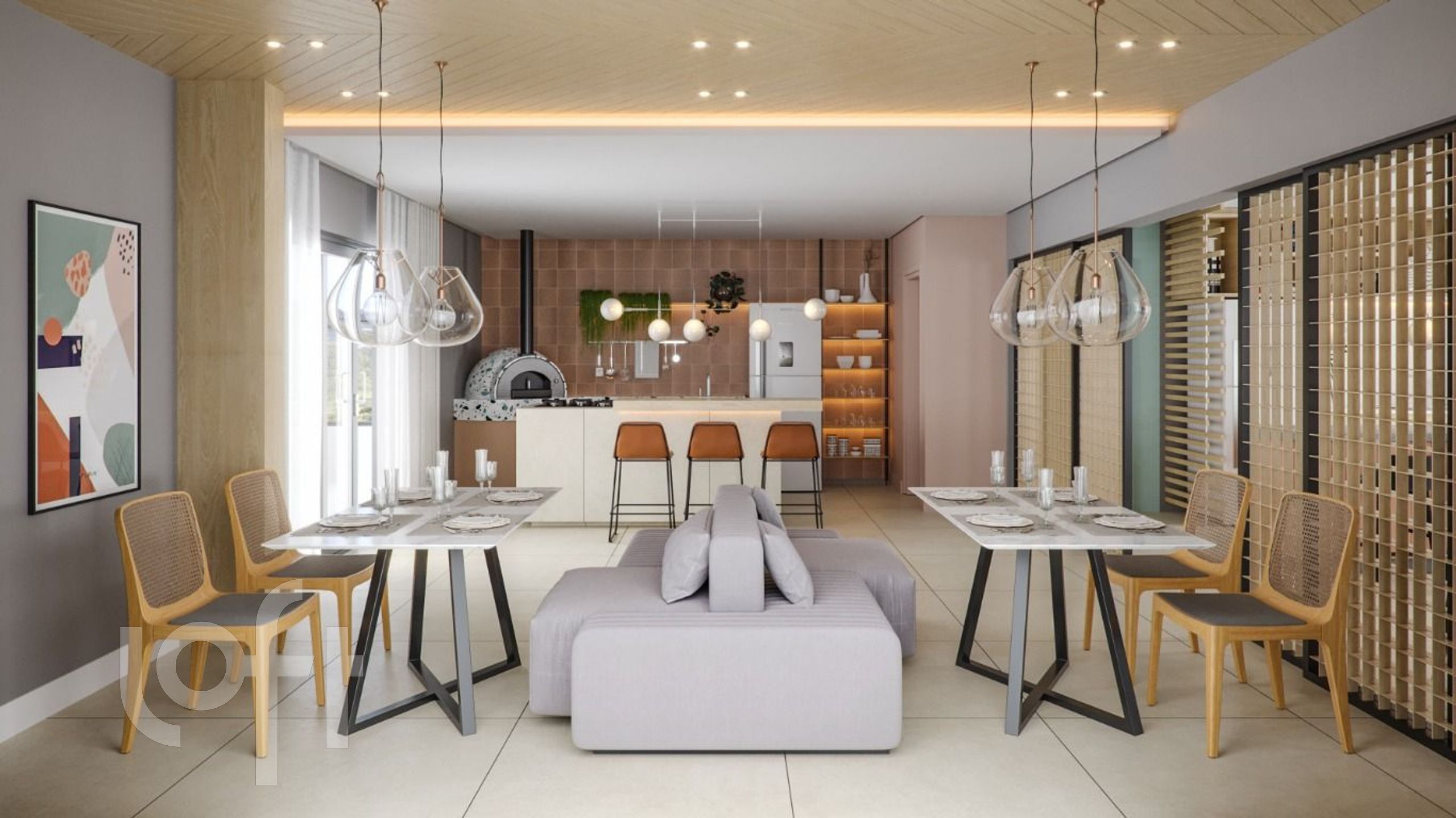 Espaço gourmet com terraço integrado e praça de fogo
