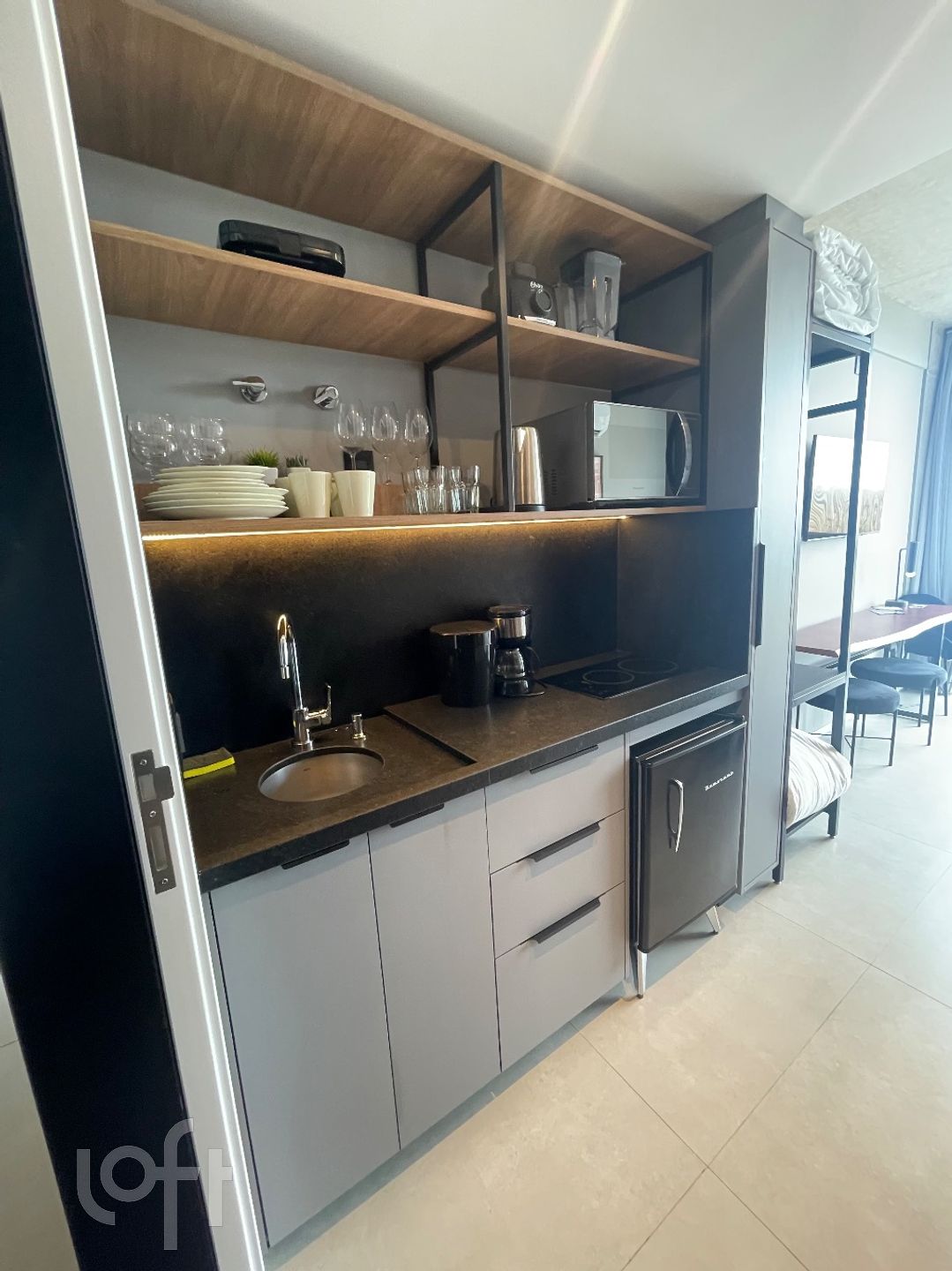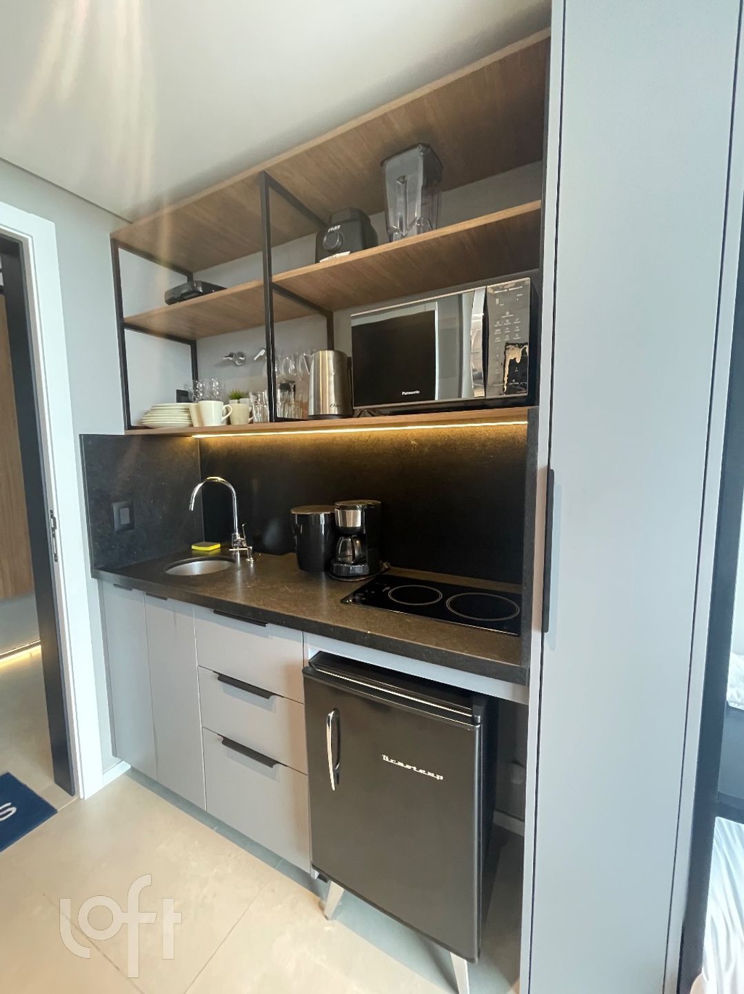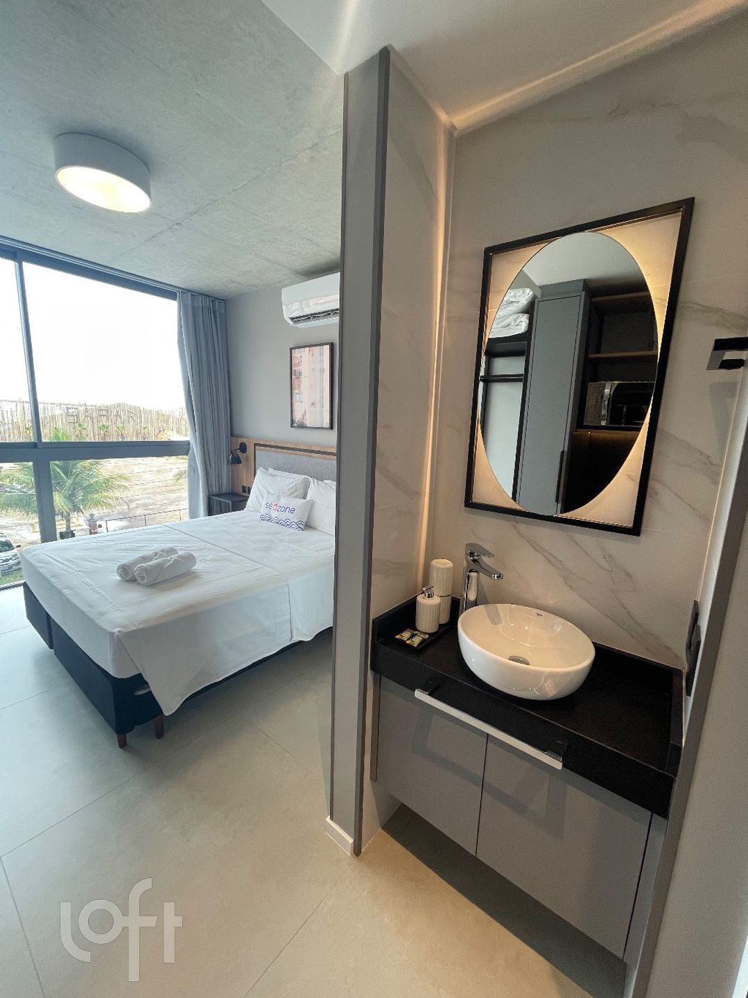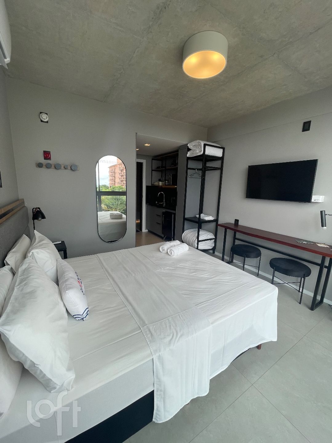 Lindo Loft à venda em Jurerê, Florianópolis. Com 1 dormitório, 1 banheiro, armários no banheiro, na cozinha e no dormitório. Possui também cama de casal, fogão cooktop, geladeira, microondas e TV. A localização é ótima, com infraestrutura nova, piscina e água quente. Aproveite essa oportunidade de investimento!