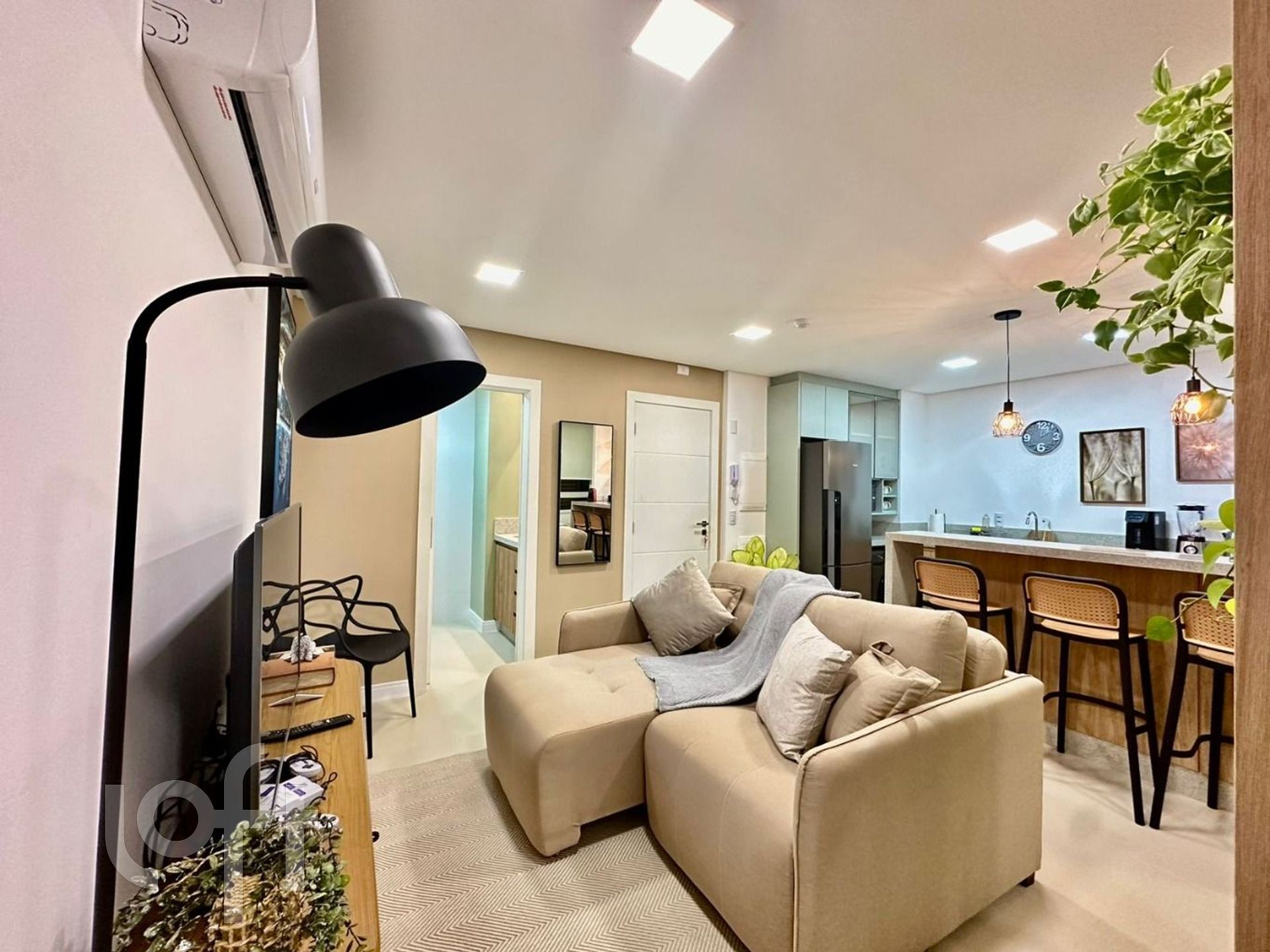 Apartamento tipo Studio todo mobiliado com ótimo aproveitamento de espaço e 1 vaga de garagem escriturada na Lagoa da Conceição em Florianópolis. Com 45 m² de área privativa, unidade de frente com muito sol. Sala integrada com cozinha americana. Cozinha com bancada em granito e toda completa. Ambiente com cama casal e espaço home office. Outo ambiente separada com cama solteiro. Banheiro espaçoso com ventilação natural por janela. Imóvel impecável, entrar e morar. Ótimo investimento para AIRBNB, entregando rendimento de 1%. Prédio novo todo reformado, com elevador, câmeras de segurança e projeto arquitetônico moderno com 21 unidades tipo Studio. Localizado no Centrinho da Lagoa, ao lado de todo o comércio e serviços. Escritura pública individualizada e financiável por qualquer banco. Agende sua visita com o corretor. Atendimento ON LINE pelo whatsapp.