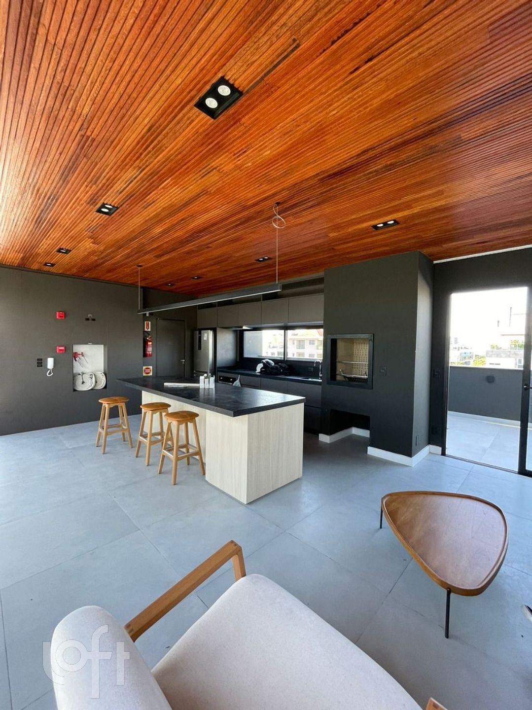 O espaço interno é aberto e espaçoso, com janelas amplas que permitem a entrada de muita luz natural.