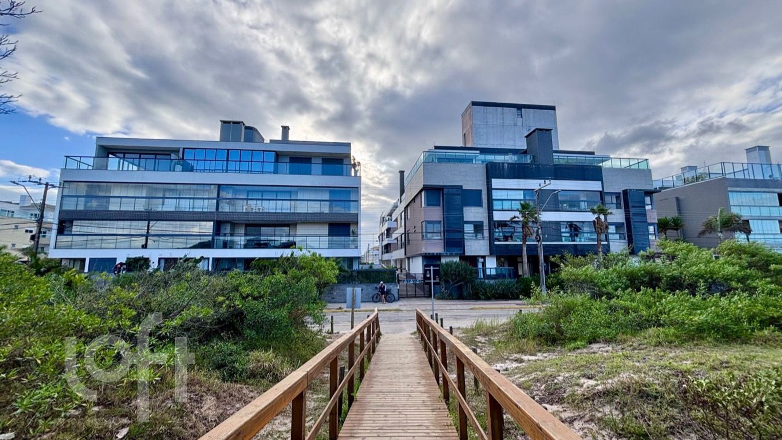 Condomínio frente mar com passarela de acesso à praia