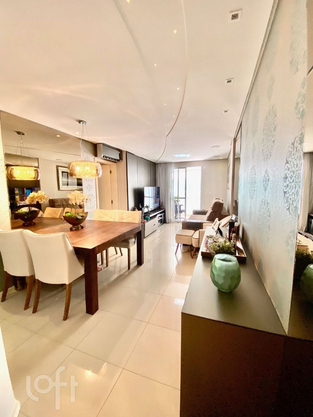 Apartamento com 2 suítes semi mobiliado com sacada, sala para 2 ambientes, sacada com churrasqueira à carvão, lavabo, cozinha, área de serviço, banheiro social e 2 vagas de garagem ampla para dois carros médios.
