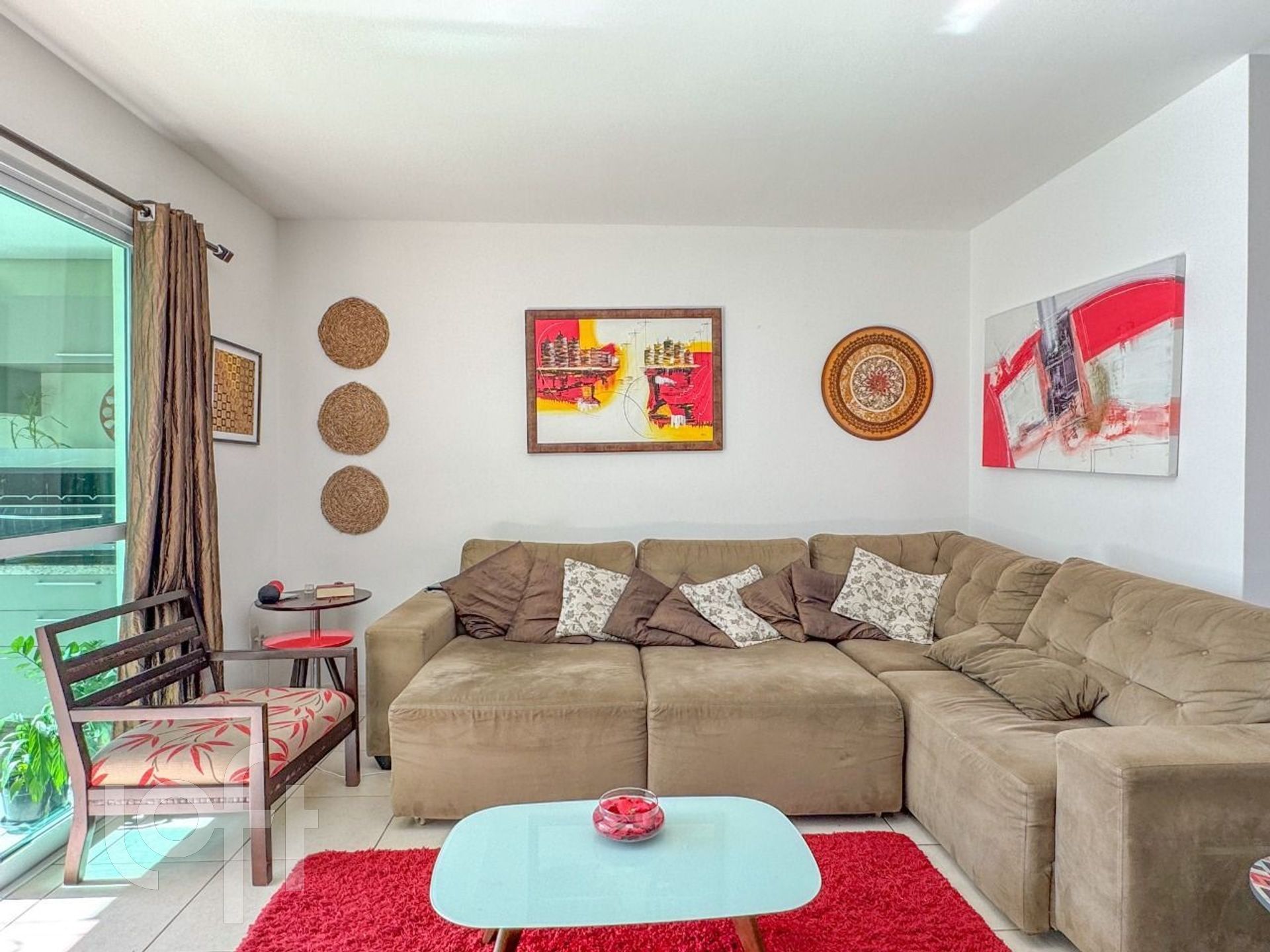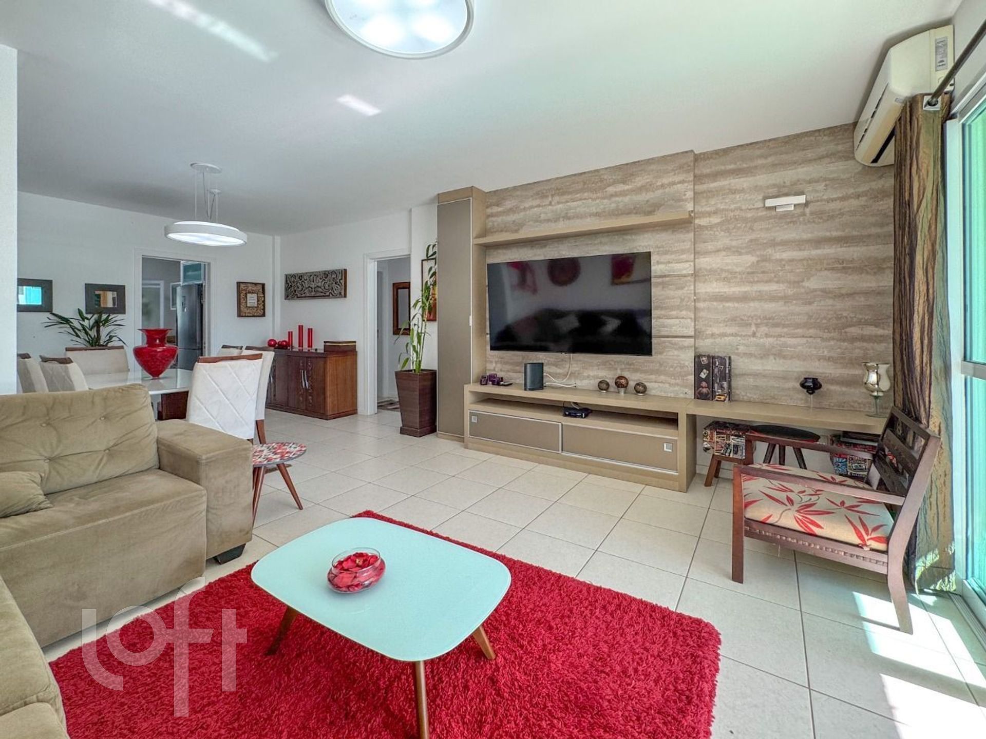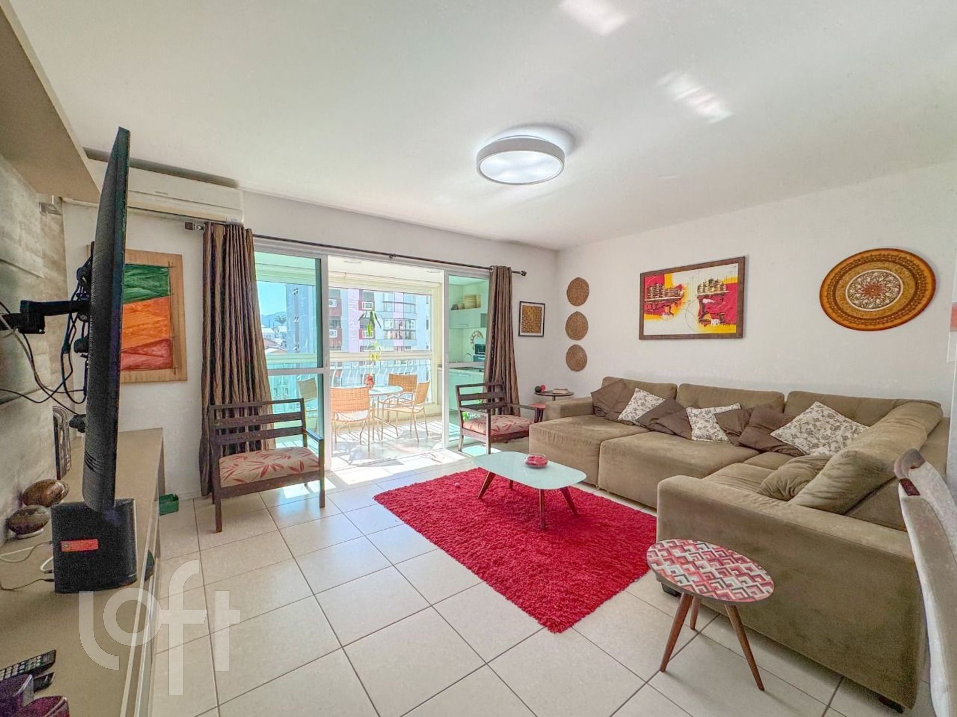 Living amplo, com dois ambientes integrados à sacada