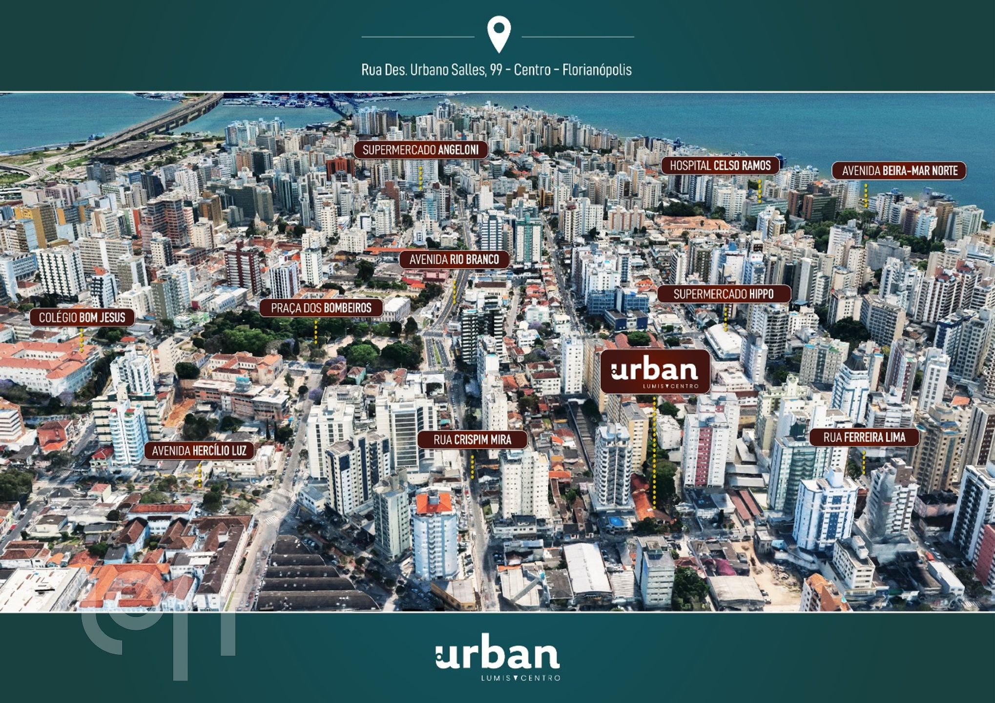 Localizado no Centro de Florianópolis, próximo à avenida Hercílio Luz e fácil acesso a serviços diversos como escolas, supermercado, shoppings e farmácias.