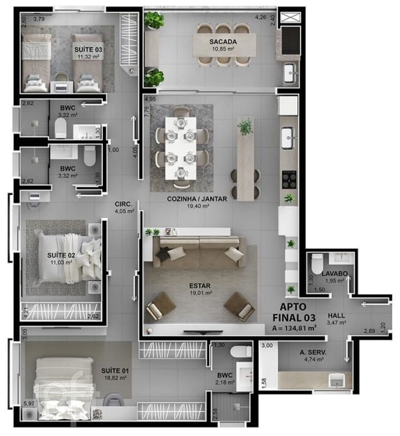 Apartamento de 134,81m² de área privativa, composto por 3 suítes e 2 vagas de garagem no bairro João Paulo em Florianópolis-SC. Residencial Felipe Moraes Residence Club, um lugar com tudo que te faz viver bem. Venha viver uma experiência incrível e aproveitar a essência da energia do mar, em um verdadeiro clube a beira mar e com uma vista deslumbrante. Unidade com vista. Empreendimento alto padrão que lhe proporcionará muito lazer e conforto. Área de Lazer Premium com mais de 11.500 metros com tudo que você merece e sempre sonhou: Academia, cinema, espaço gourmet, garage band, galpão tropeiro, horta orgânica, pomar, casa na árvore, pista de corrida e caminhada, espaço pet, quadra poliesportiva, futebol grama, beach tênis, piscina externa, piscina aquecida coberta, sauna seca e úmida, praça do fogo, oásis com carpas, deck zen, redário, academia ao ar livre, espaço fogueira e Luau, bangalôs com Churrasqueira e espaço lava car. Tudo isso num ÚNICO LUGAR. Entrega prevista para agosto de 2024. Esta unidade tem Hall de entrada, cozinha, área de serviço, sala de estar e jantar, lavabo social, sacada/terraço com churrasqueira à carvão, circulação interna e 03 (três) suítes. Agende sua visita com o corretor licenciado ao lado.