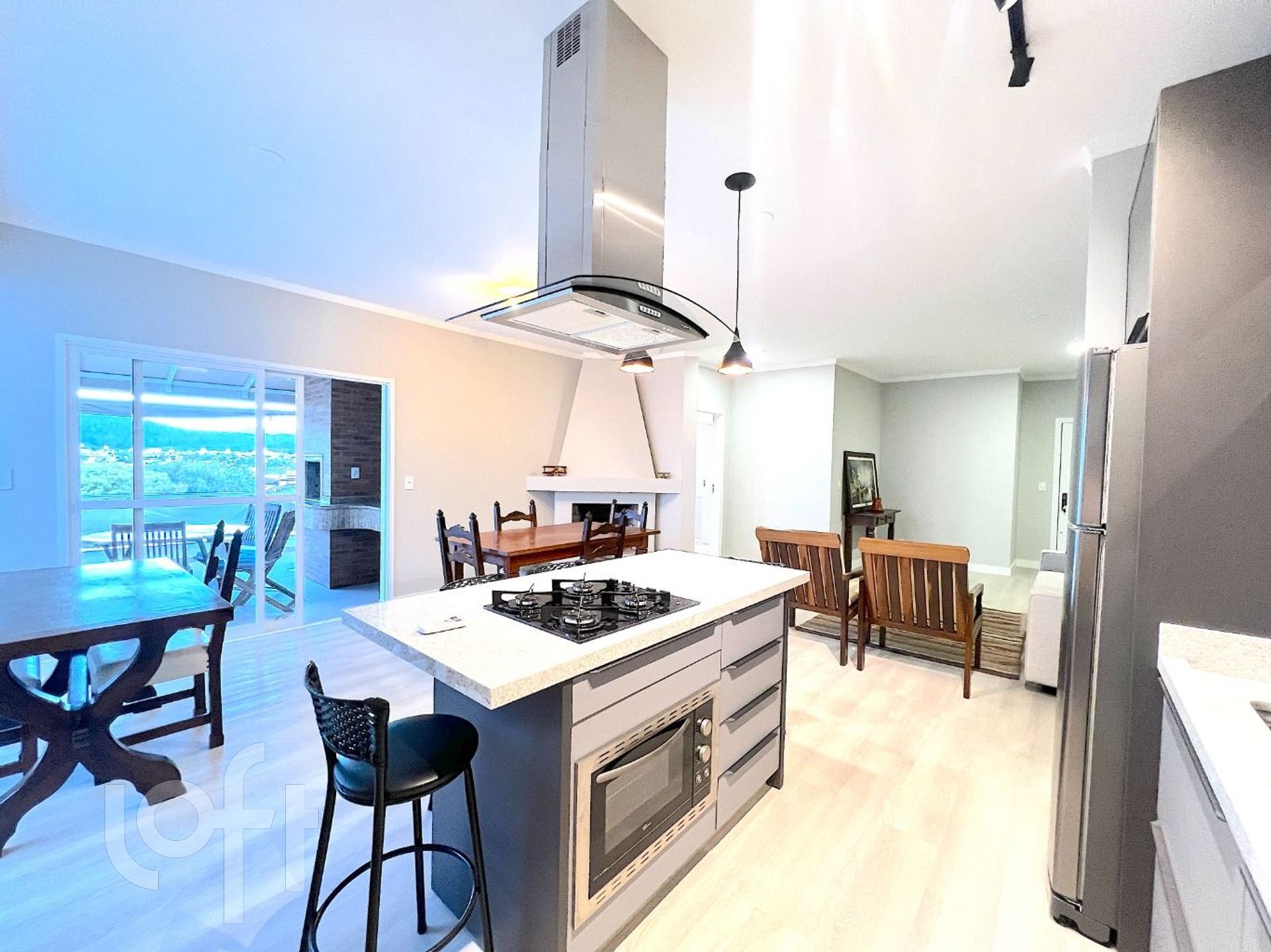 Cozinha com conceito aberto, totalmente integrada à sala, proporcionando um ambiente moderno e funcional;