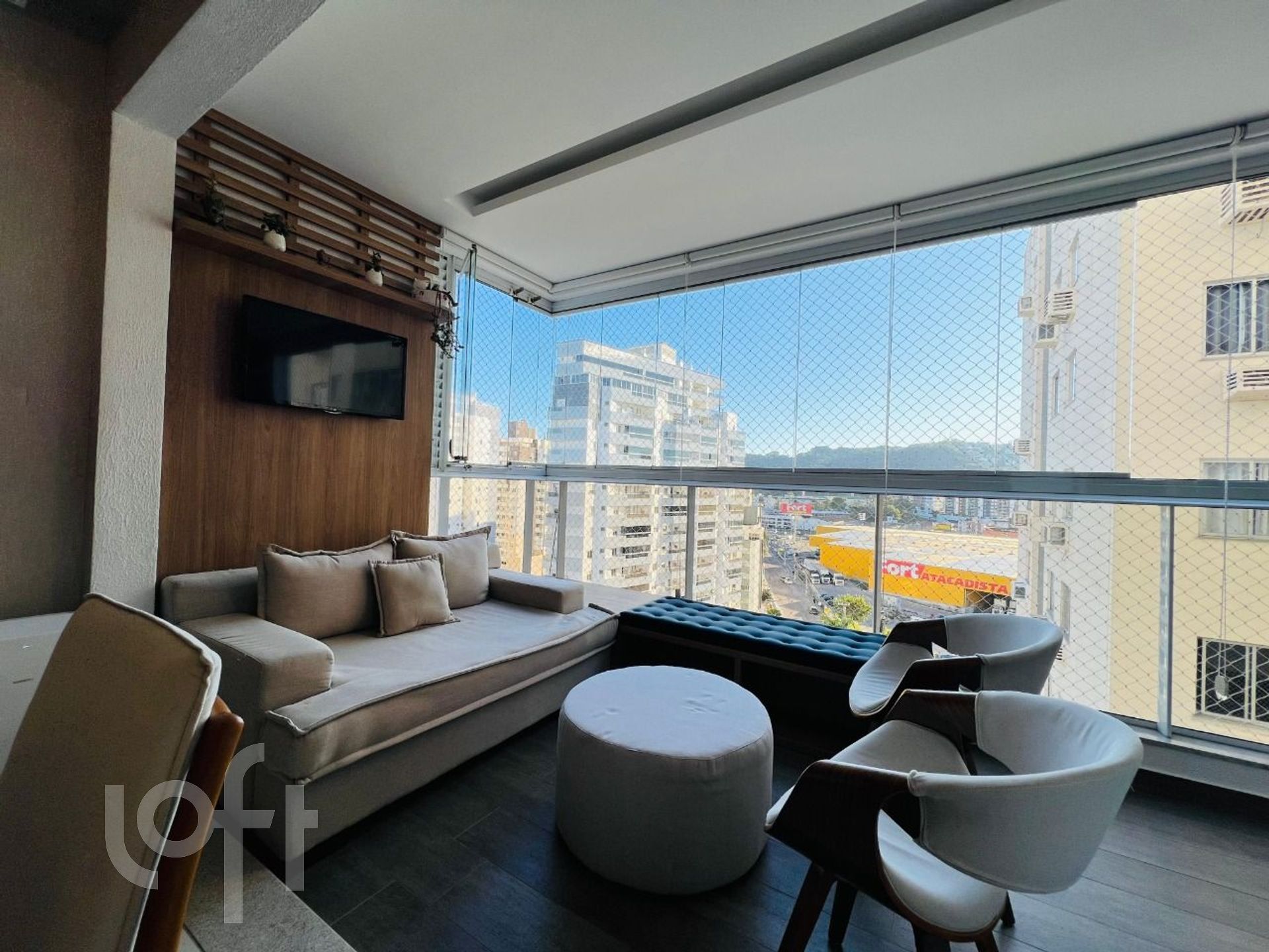 – Sacada com churrasqueira integrada ao living;