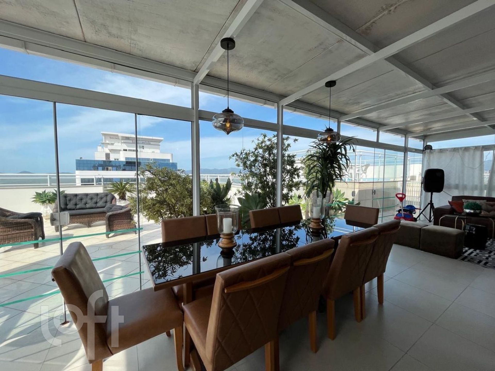 Cobertura mobiliada no Estreito com piscina privativa e ampla vista mar e para a Ponte Hercilio Luz.