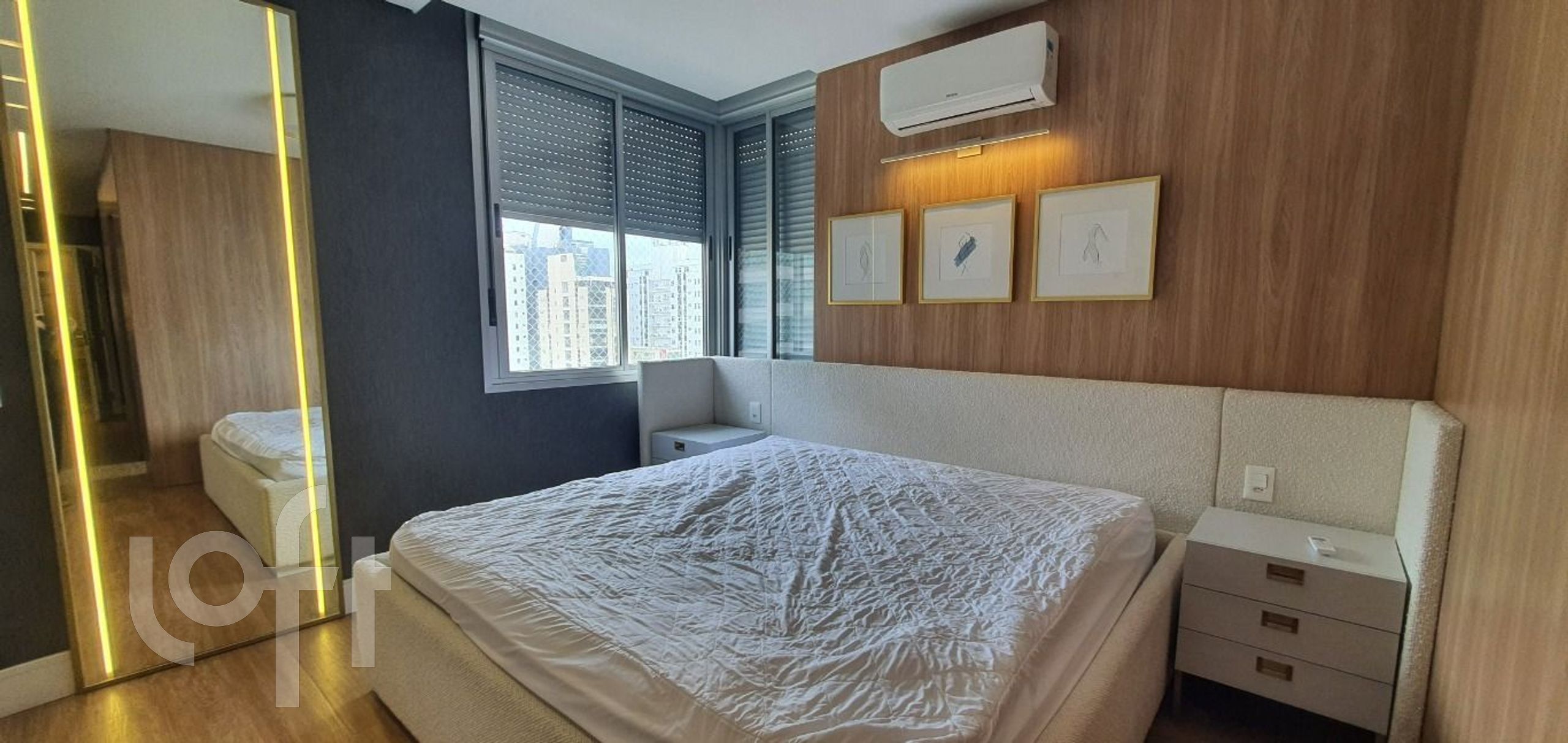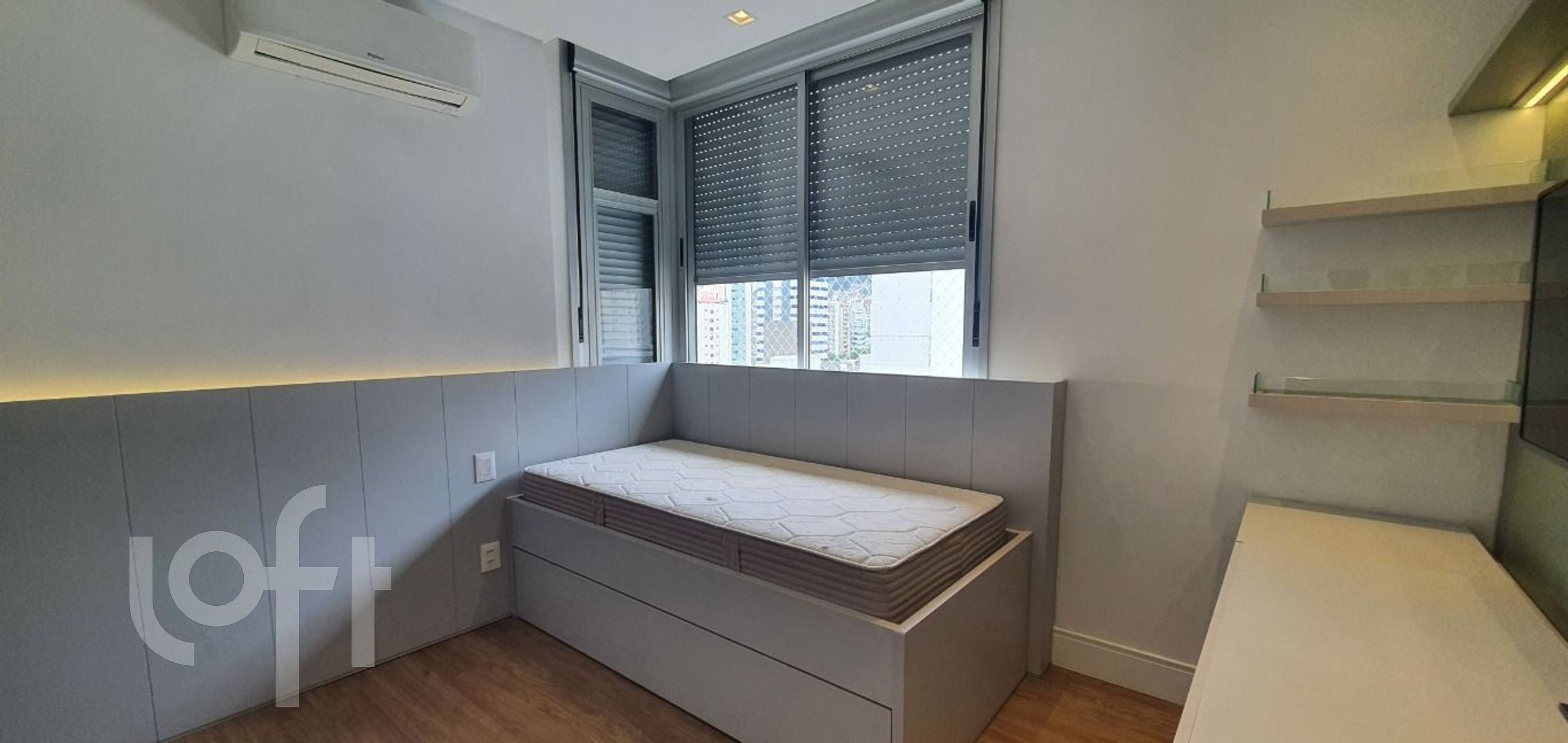 Os ambientes são climatizados com ar-condicionado split e contam com móveis planejados e eletrodomésticos de alto padrão. O piso vinílico reforça o conforto e o acabamento refinado. A planta inteligente garante excelente iluminação natural, ventilação cruzada e acesso separado para área social e de serviço.