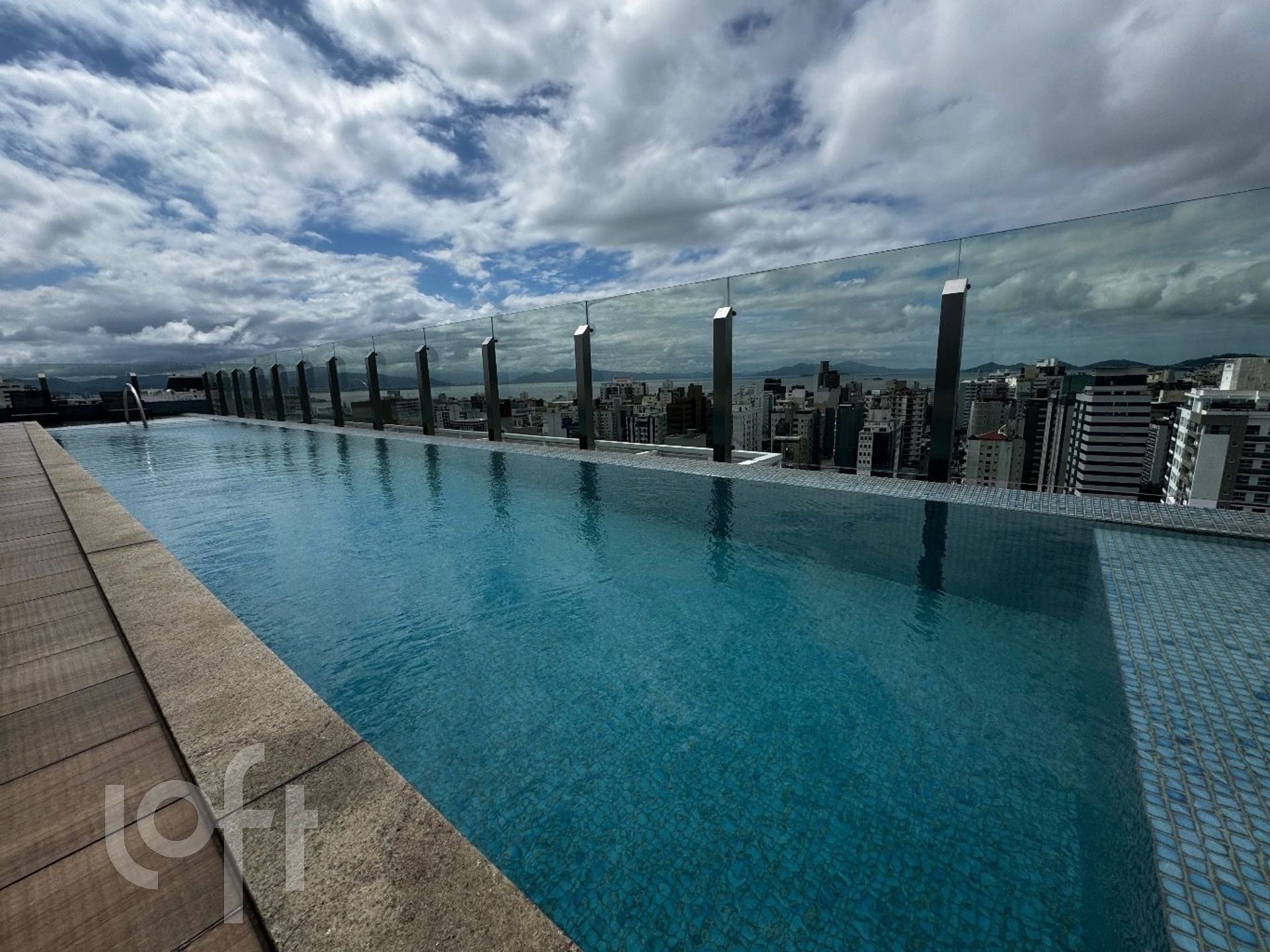 Piscina no rooftop com vista deslumbrante.