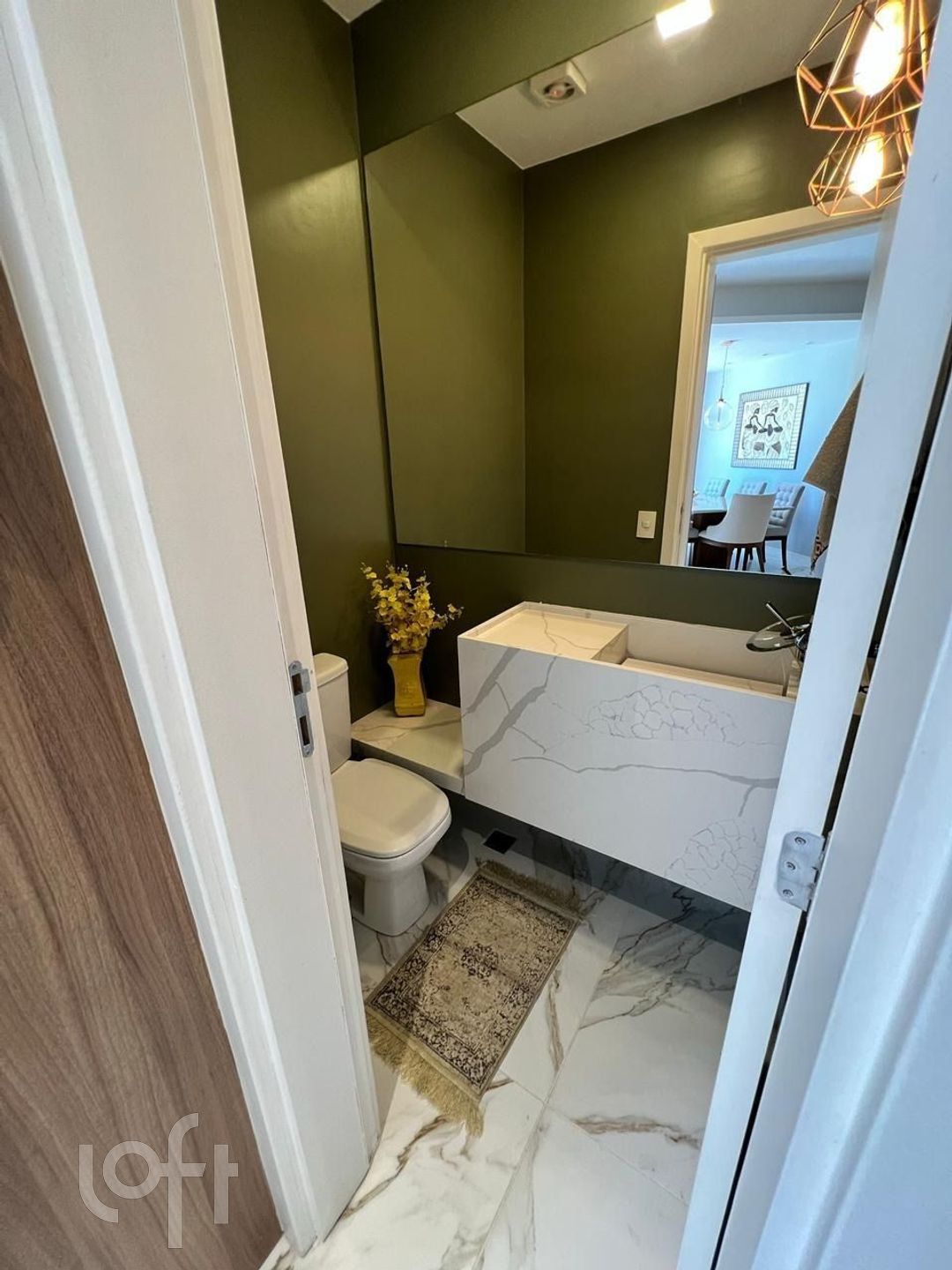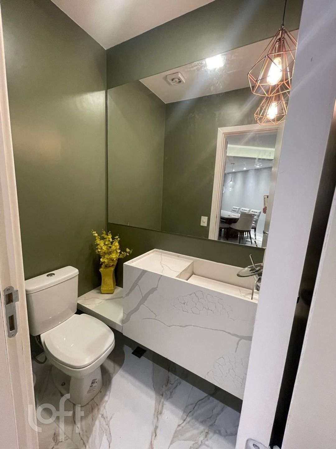 Lavabo moderno, estrategicamente posicionado para oferecer praticidade e privacidade às visitas.