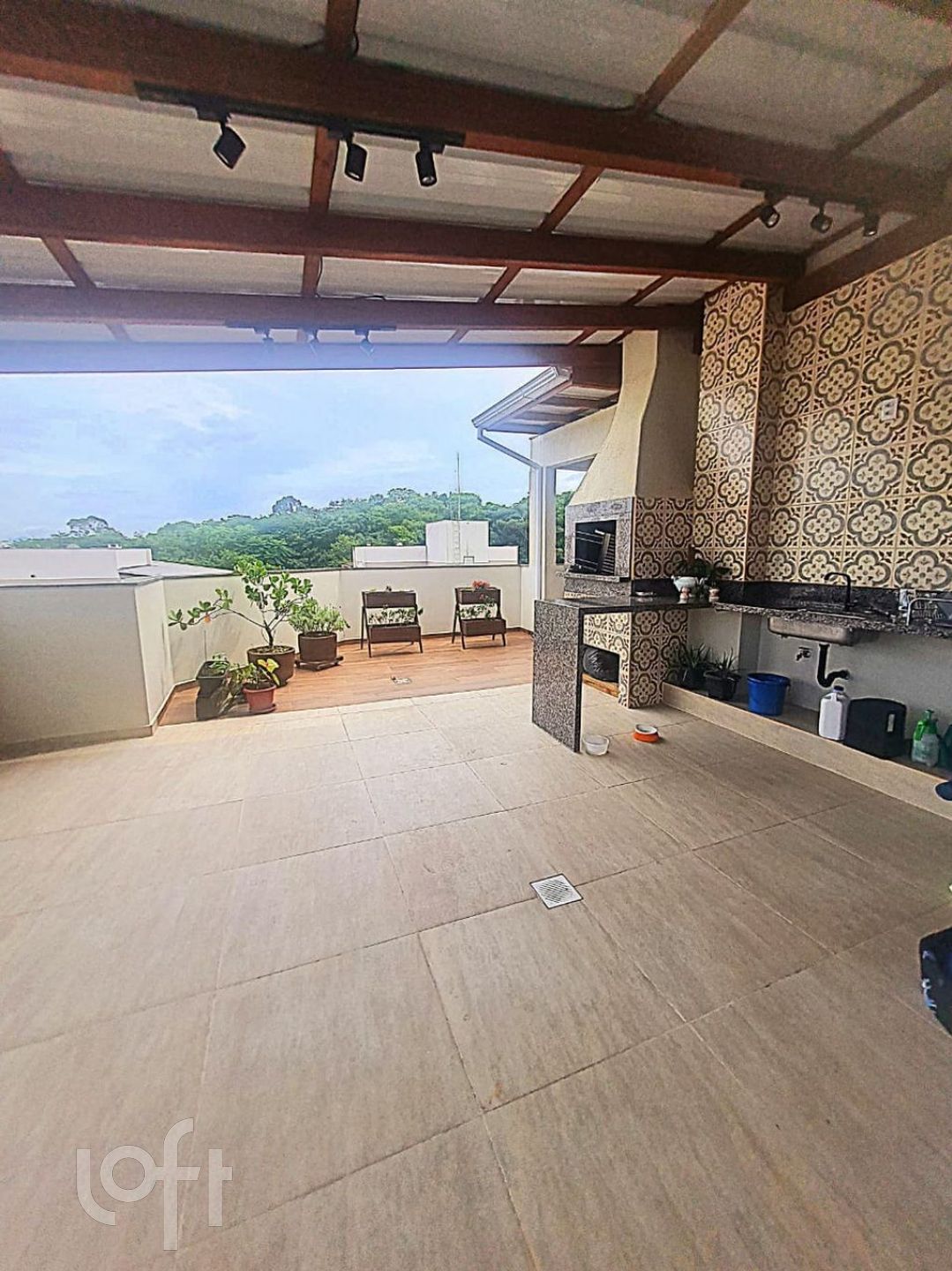 – Pátio externo com churrasqueira a carvão, cozinha externa e área de lazer.