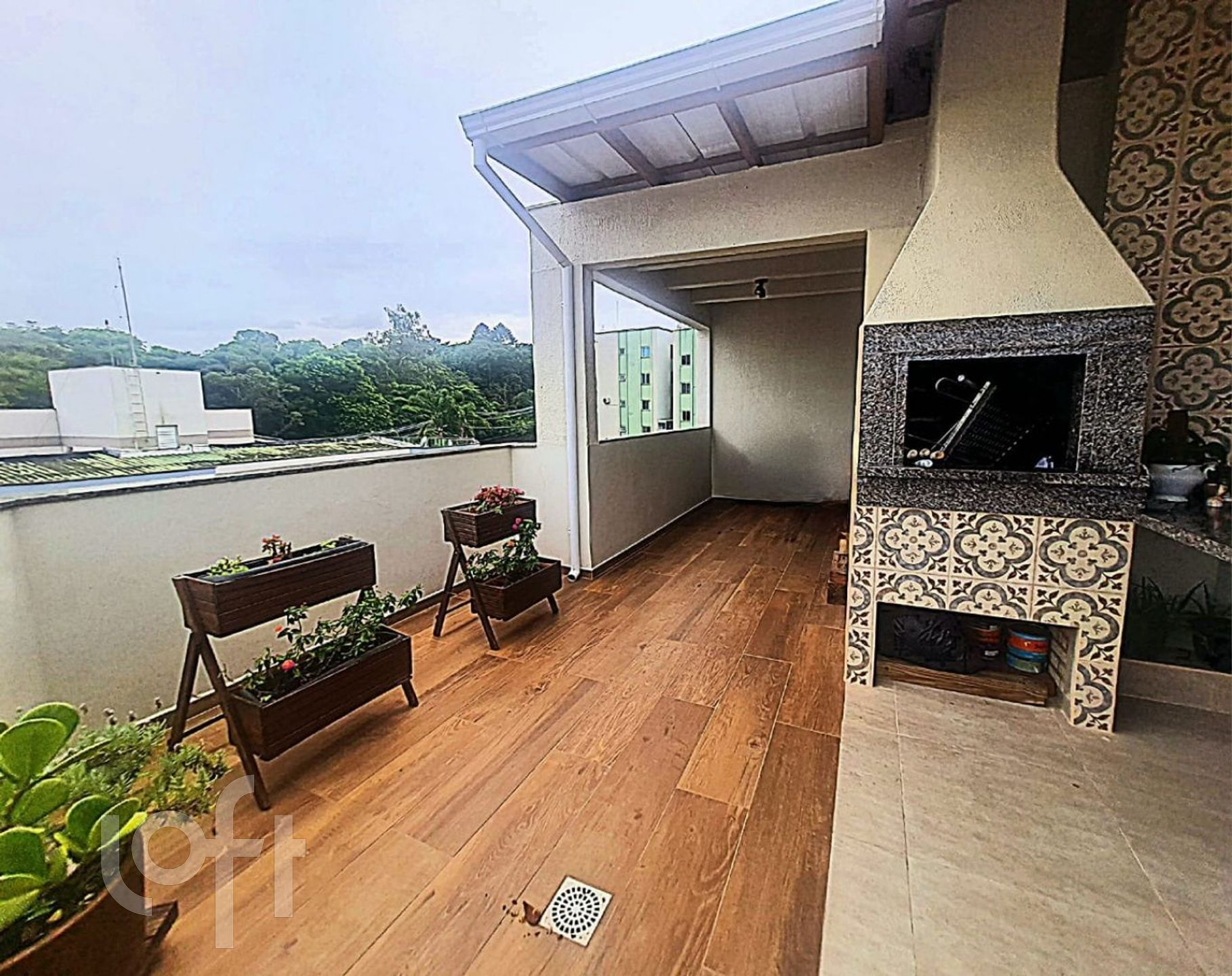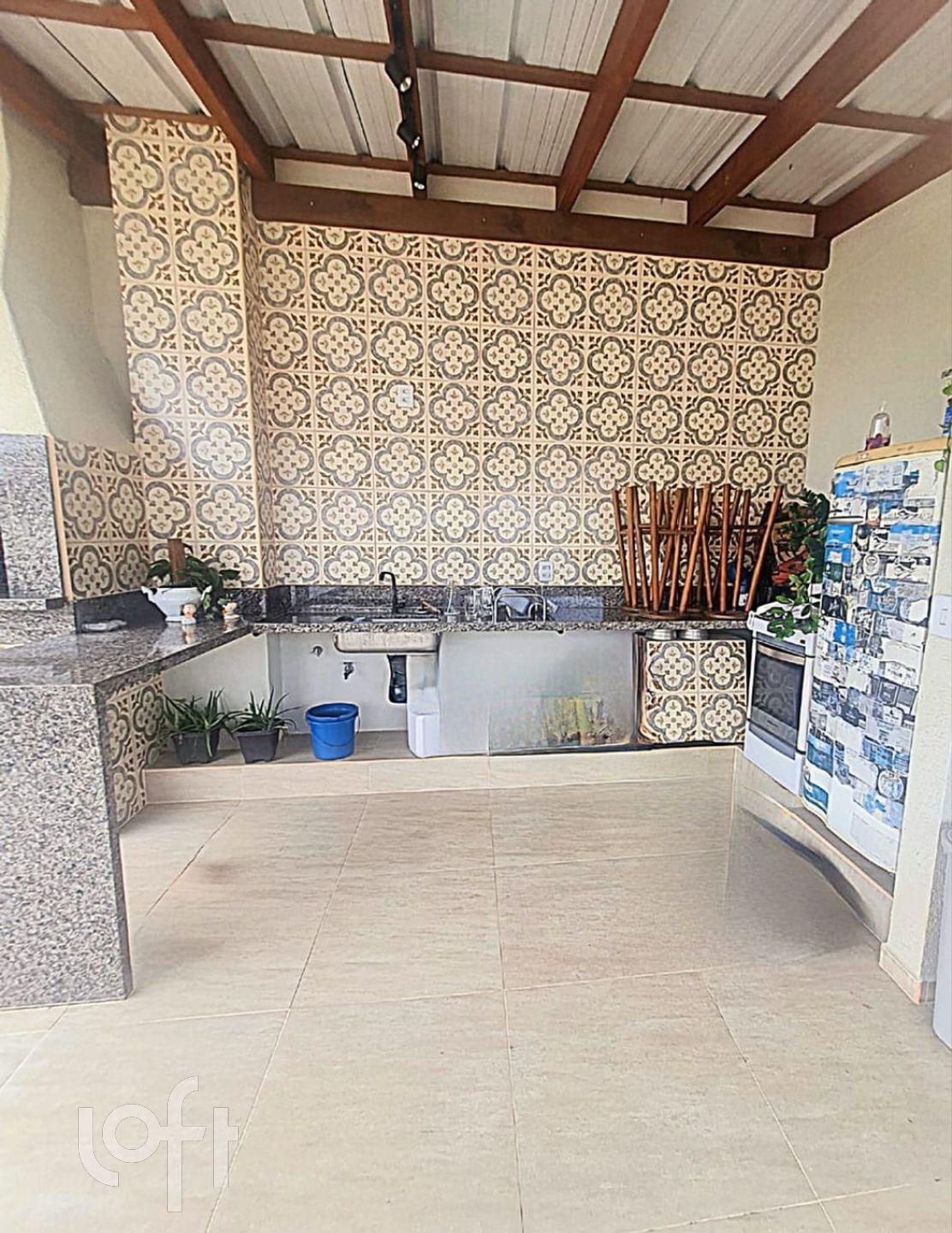– Pátio externo com churrasqueira a carvão, cozinha externa e área de lazer.