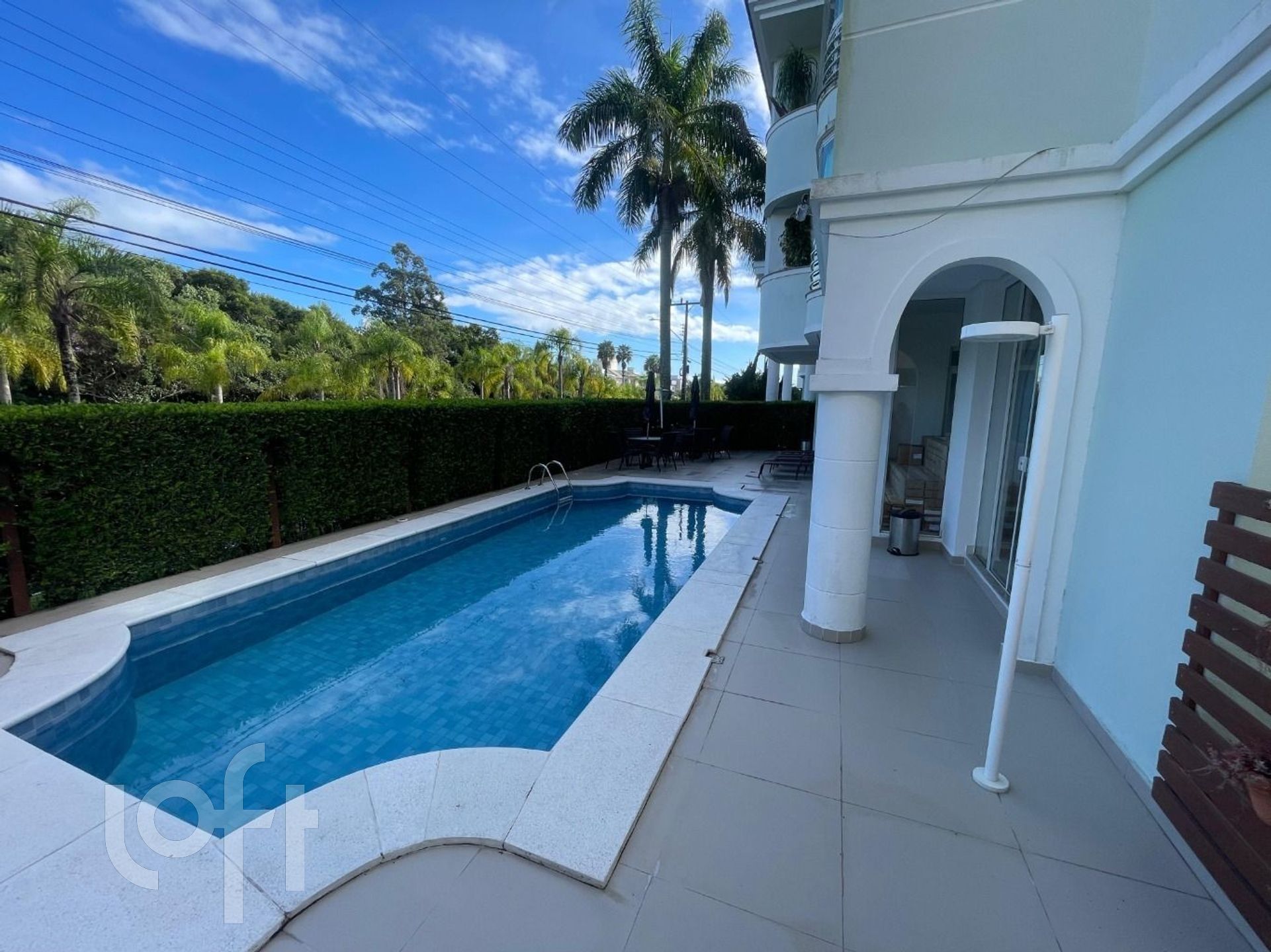 Condomínio com piscina, salão de festas e espaço gourmet.