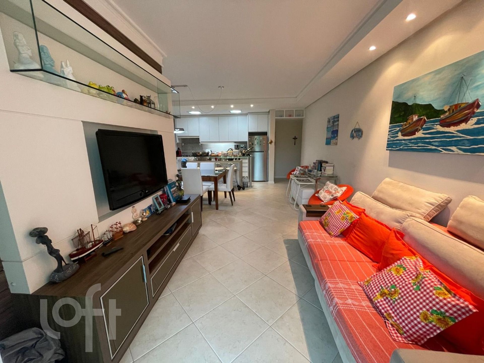 Apartamento com 3 suítes, lavabo, cozinha americana, sala de tv e jantar, área de serviço e sacada com churrasqueira.
