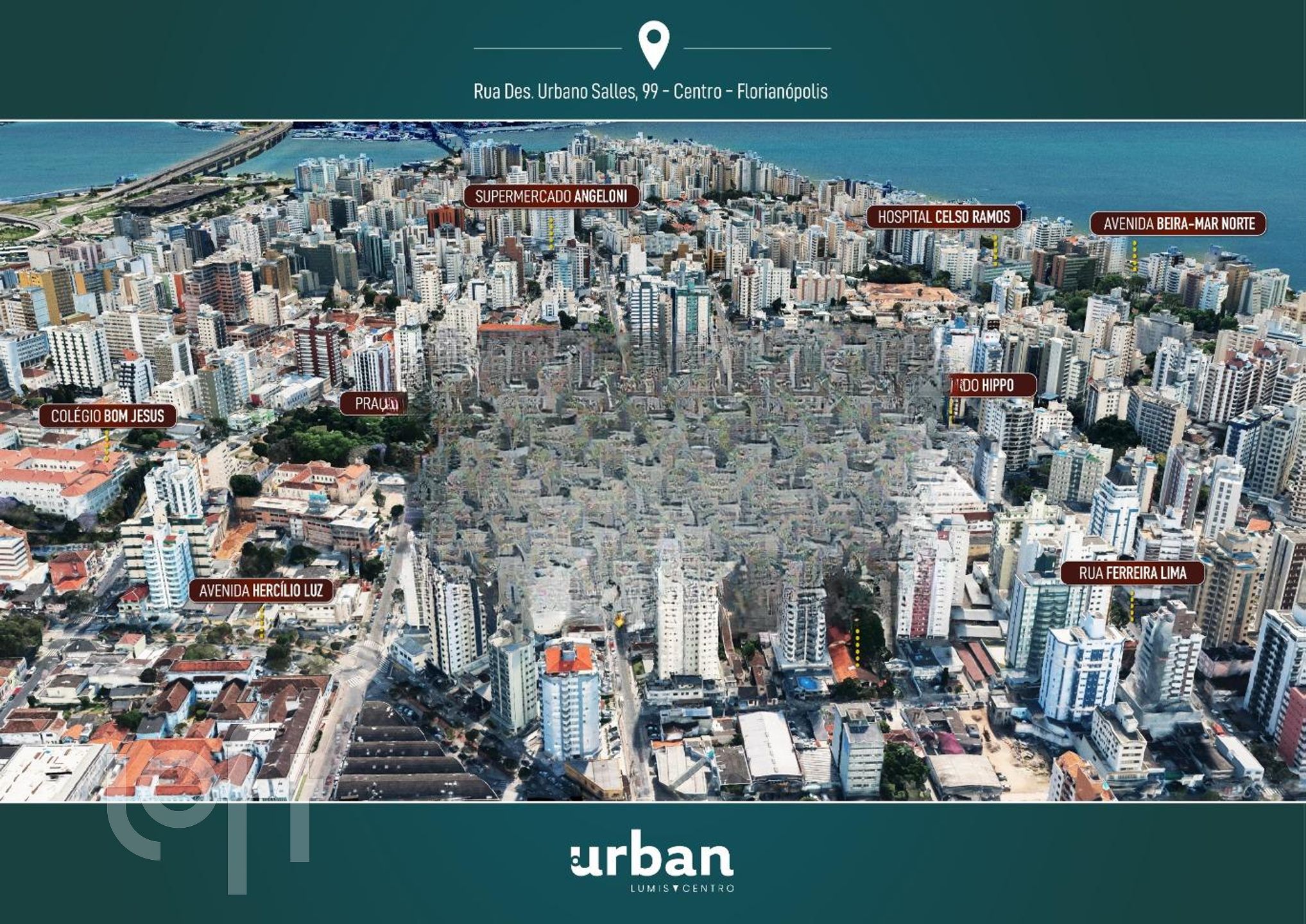 Localizado no Centro de Florianópolis, próximo à avenida Hercílio Luz e fácil acesso a serviços diversos como escolas, supermercado, shoppings e farmácias.