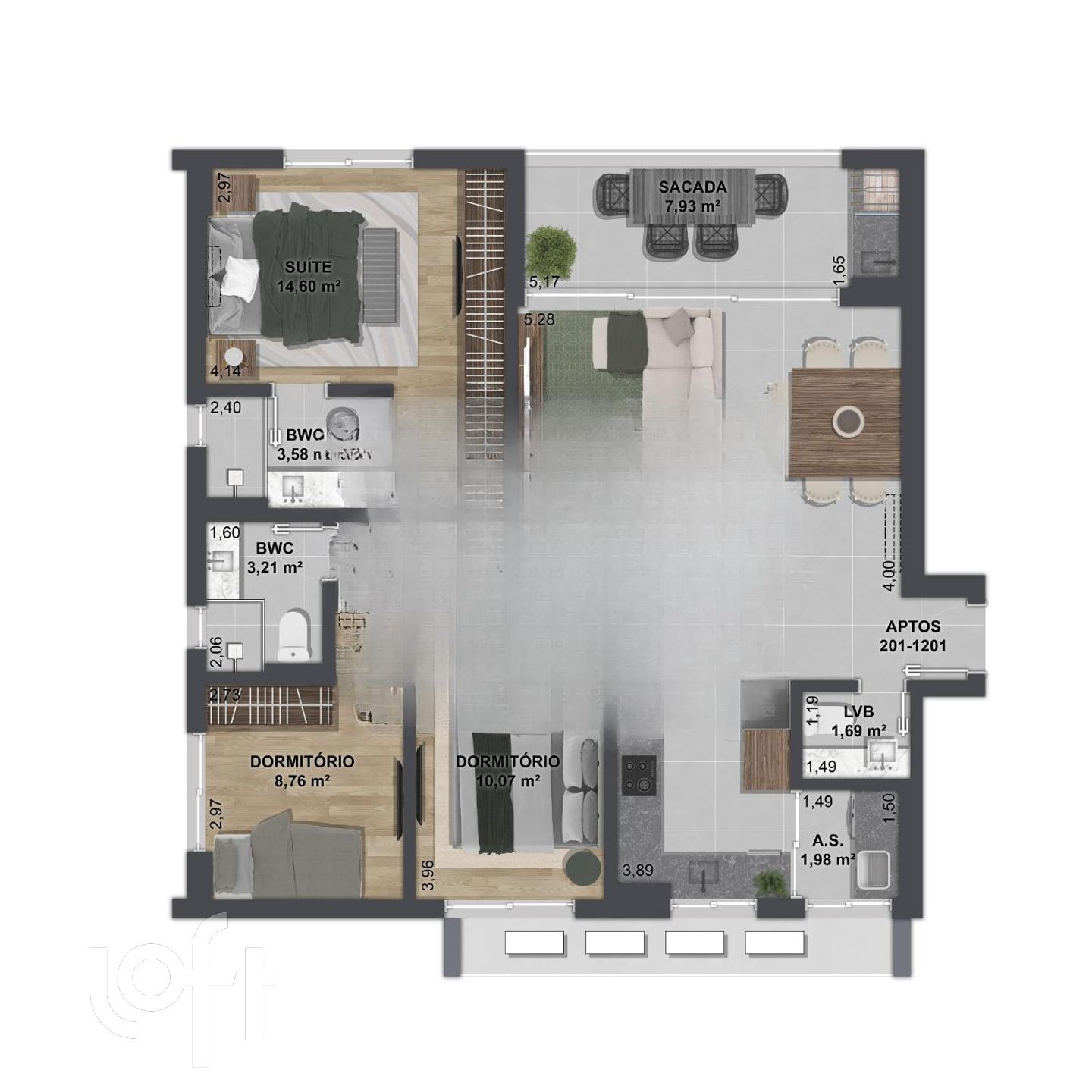 Apartamento de 107m² de área privativa