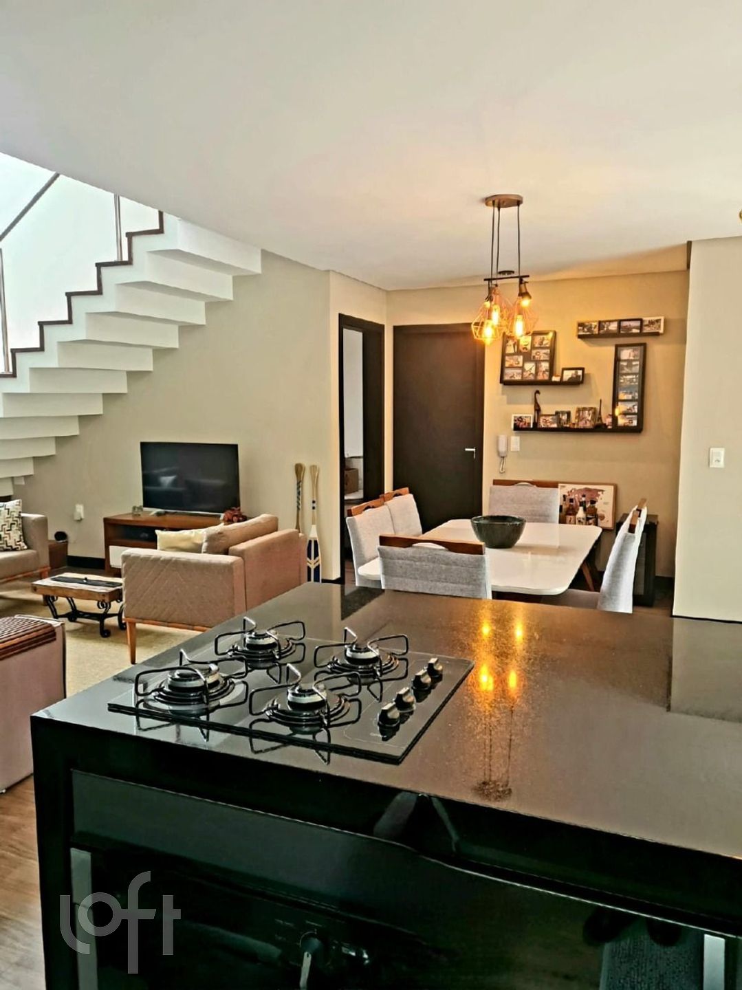 Andar Térreo: Sala para dois ambientes, cozinha estilo americana com móveis planejados, 1 dormitório, BWC social.