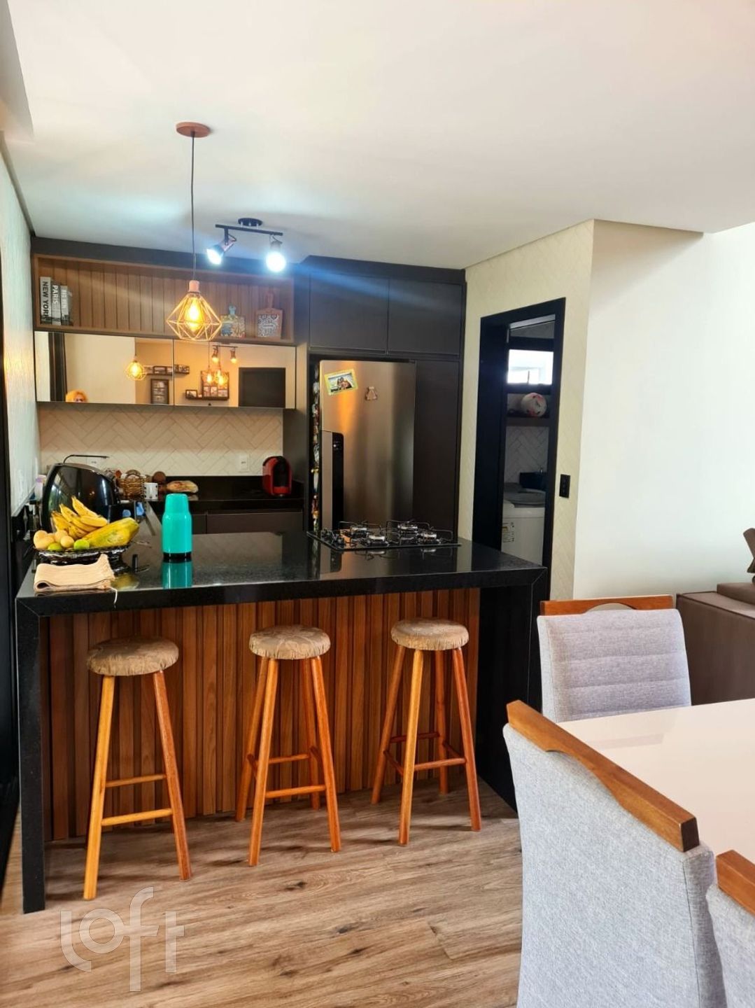 Andar Térreo: Sala para dois ambientes, cozinha estilo americana com móveis planejados, 1 dormitório, BWC social.
