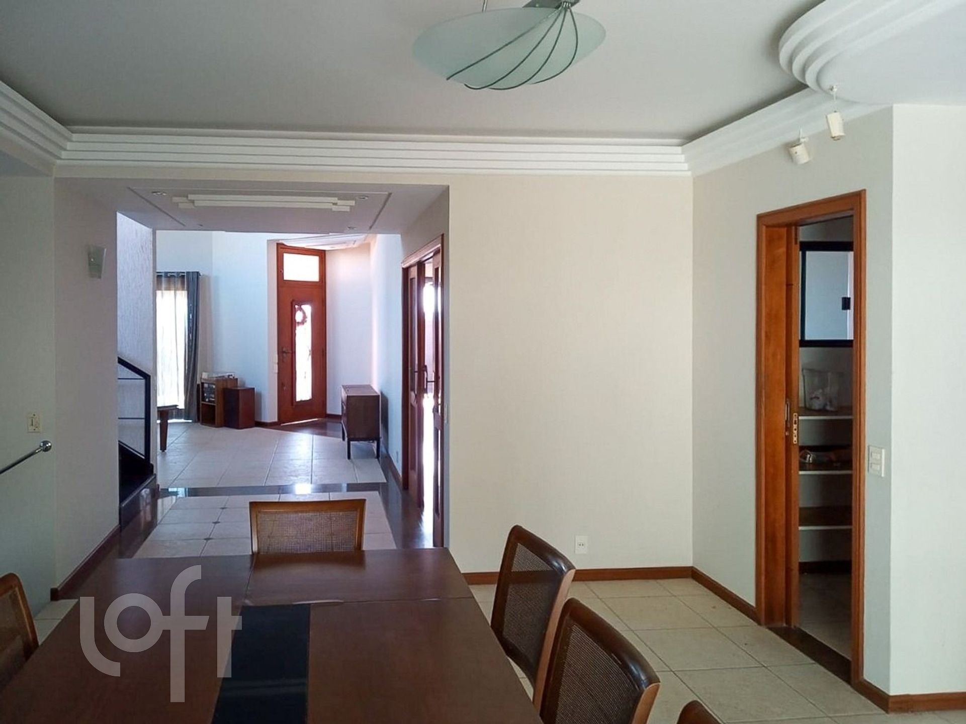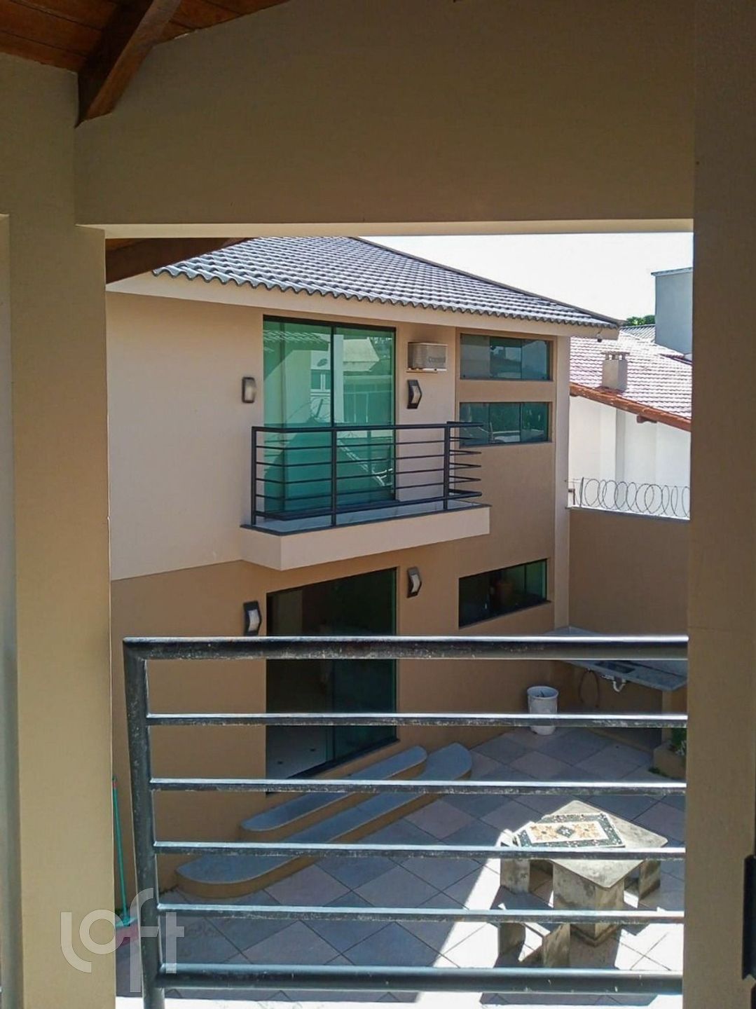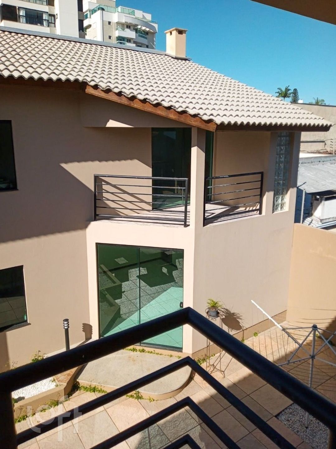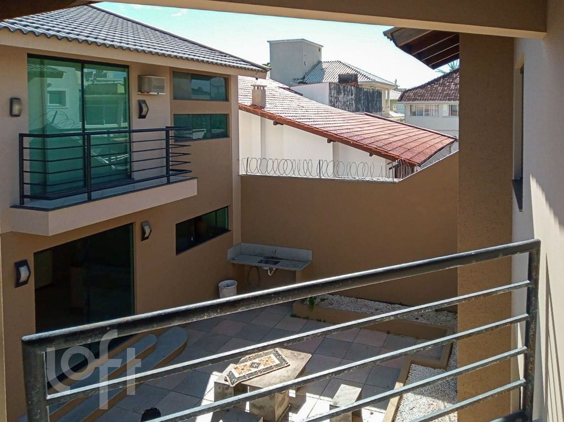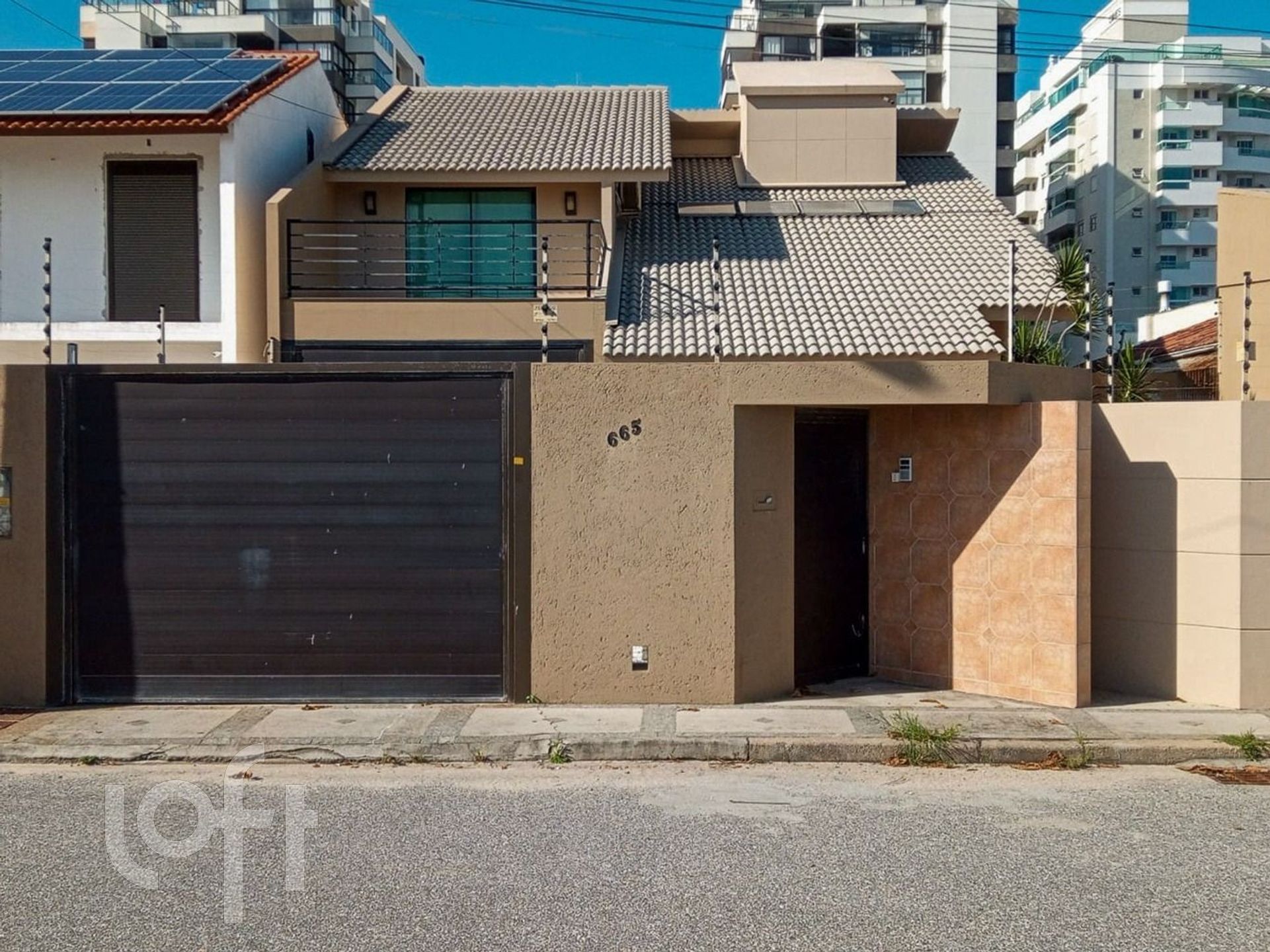 Casa residencial com 3 quartos, sendo 1 suíte e 2 demi suítes, com ampla sala de estar e jantar, cozinha integrada, água quente, lavabo, banheiro social, área de serviço, despensa, armários embutidos, quintal, sacada e semimobiliado. A área externa possui edícula com churrasqueira e cozinha. Possui vista panorâmica e vista parcial para o mar.