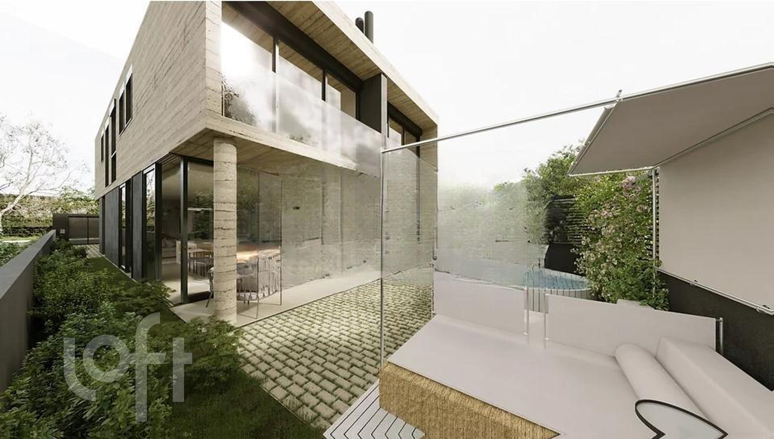 Lindíssima e moderna casa marcada pela sua simetria e linhas retas, de forma que, vista da rua, pareça uma única casa.