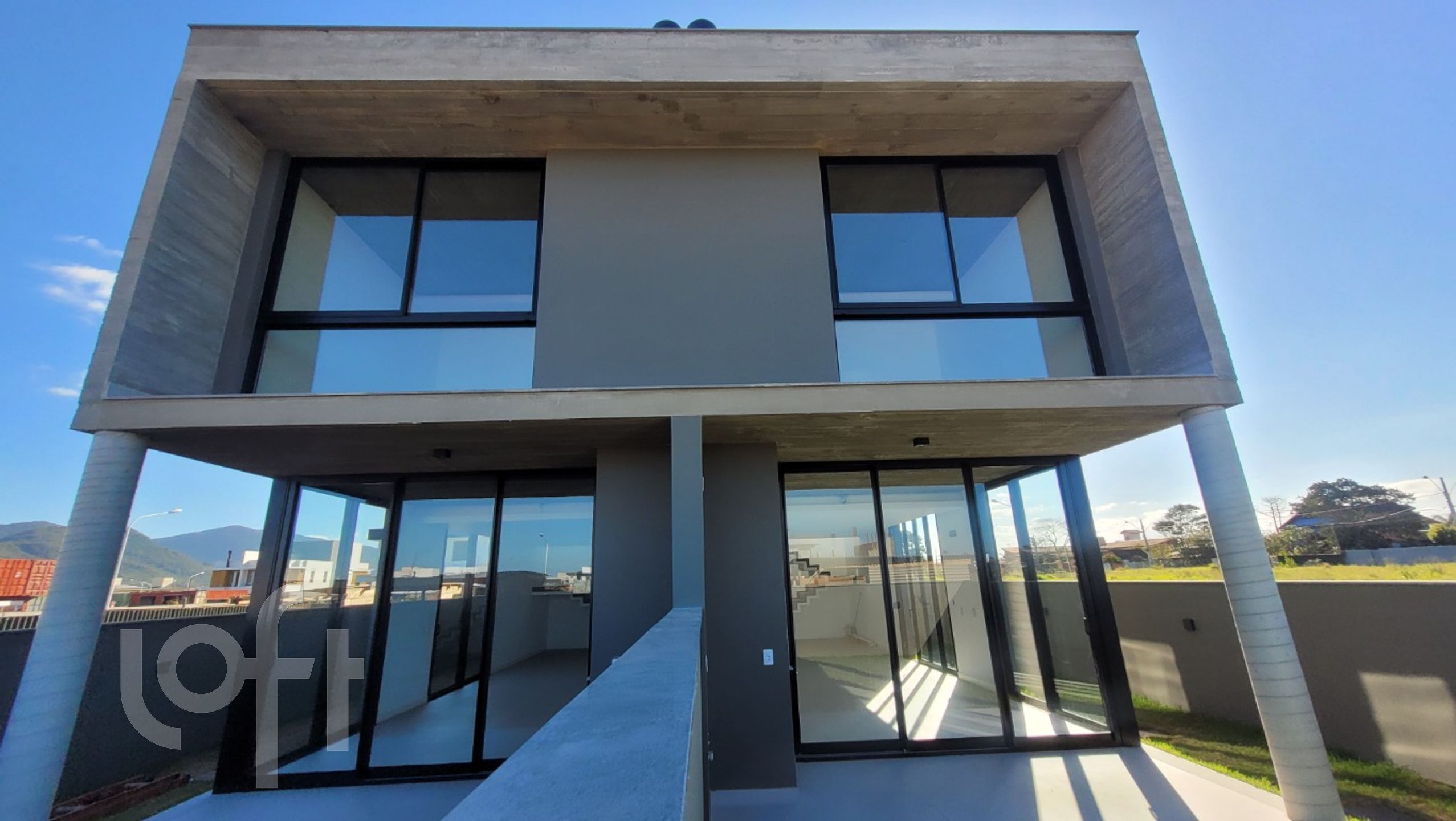 Lindíssima e moderna casa marcada pela sua simetria e linhas retas, de forma que, vista da rua, pareça uma única casa.