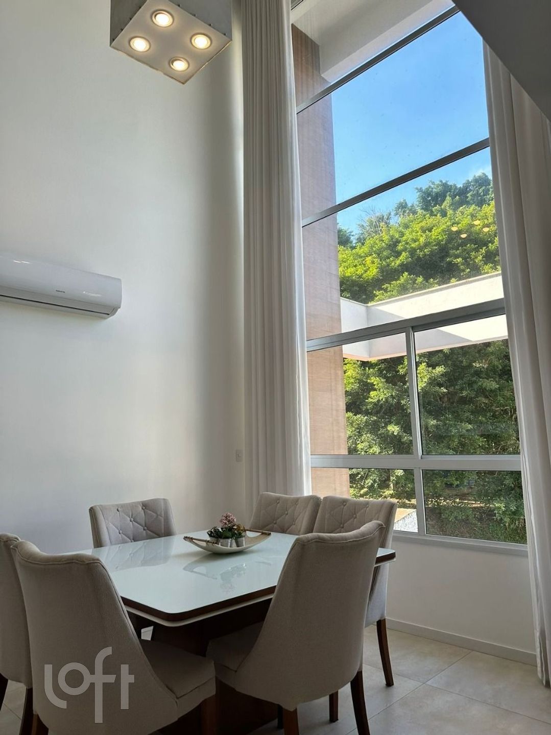 Construção nova, decoração moderna, pé direito alto, uma janela de vidro enorme que traz o verde para e azul do céu para dentro da sua sala. Ambientes ventilados, iluminação natural e cozinha integrada!