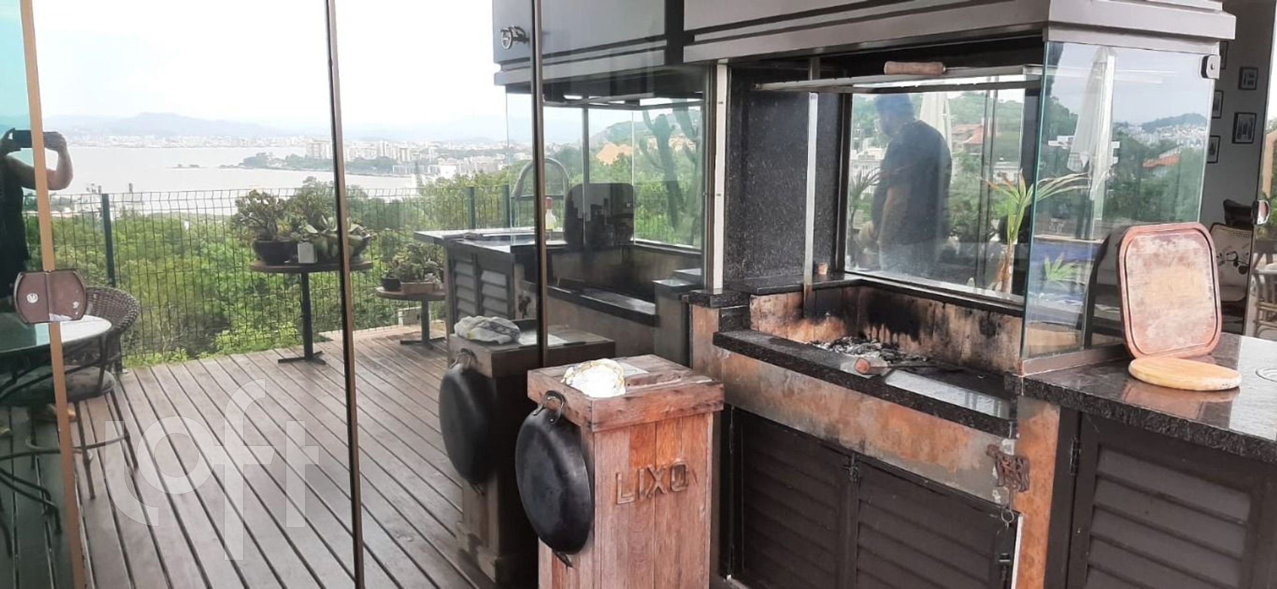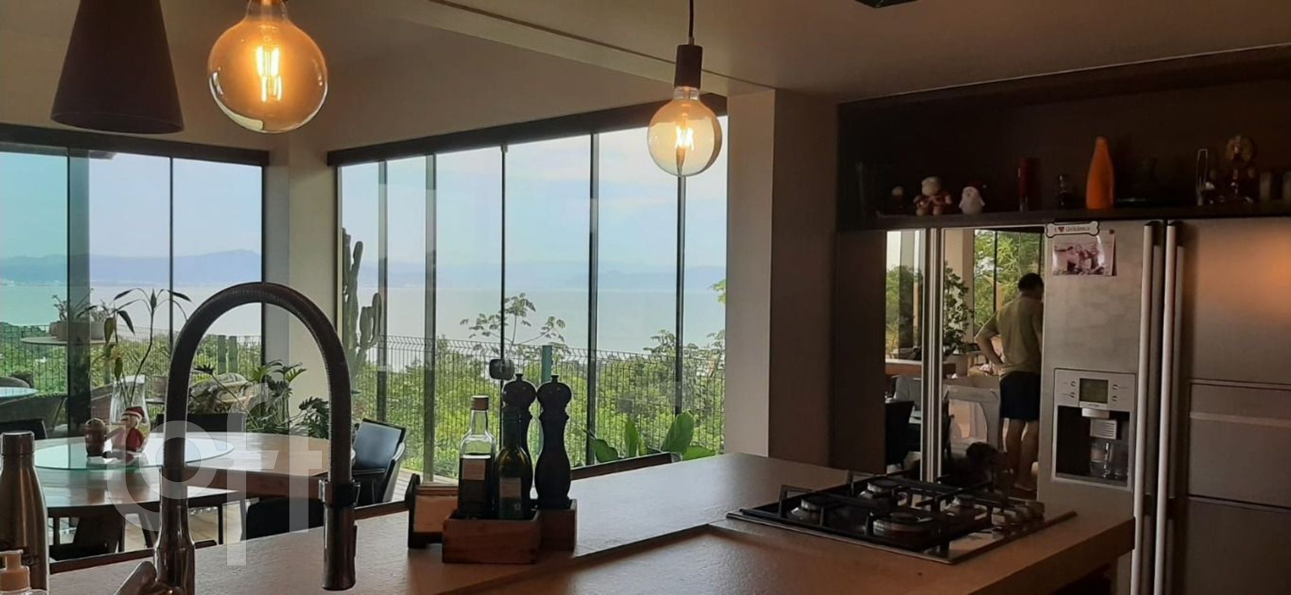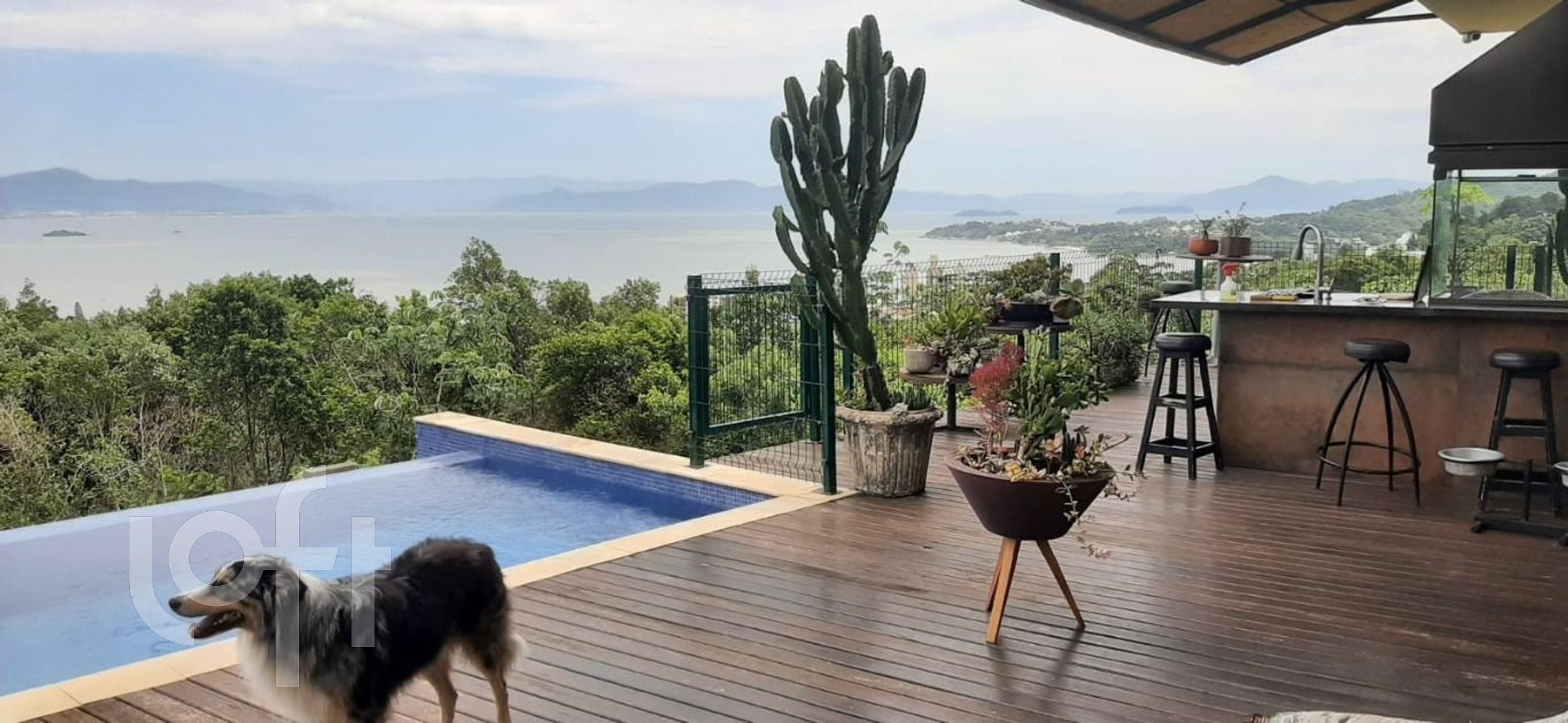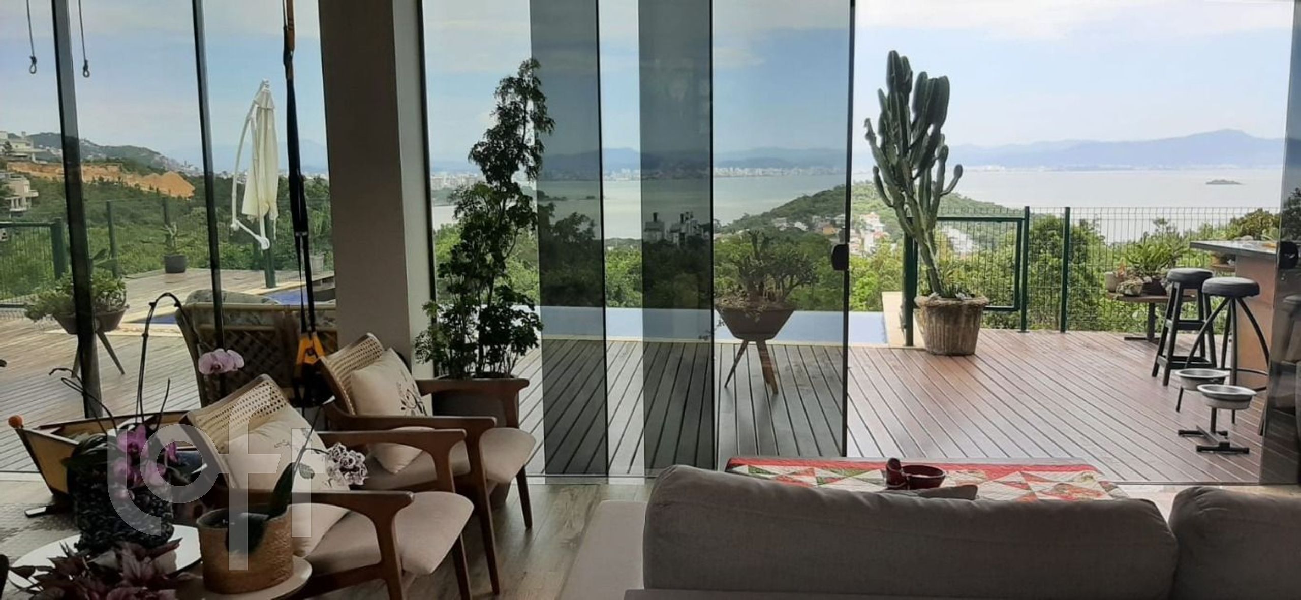 Magnífica casa , com 3 suítes, uma com banheira de hidromassagem e enorme closet, dois lavabos, duas cozinhas, área de churrasco, deck de madeira, piscina aquecida com borda infinita, 4 vagas cobertas de garagem, espera para elevador (fosso), Placas de aquecimento solar, horta, quadra de areia poliesportiva, portão eletrônico, circuito de segurança e câmeras. Contando com uma espetacular vista da Baía Norte. Em um terreno de 1.990.850m2