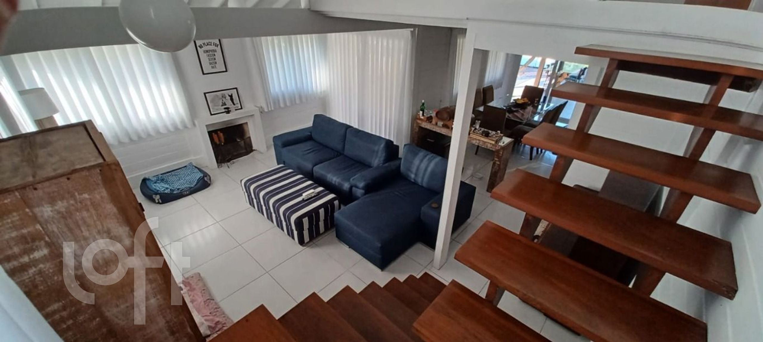 Andar térreo: ampla sala com lareira para dois ambientes com varanda, quarto, banheiro social, cozinha separada com armários sob medida, ampla área de serviço separada.