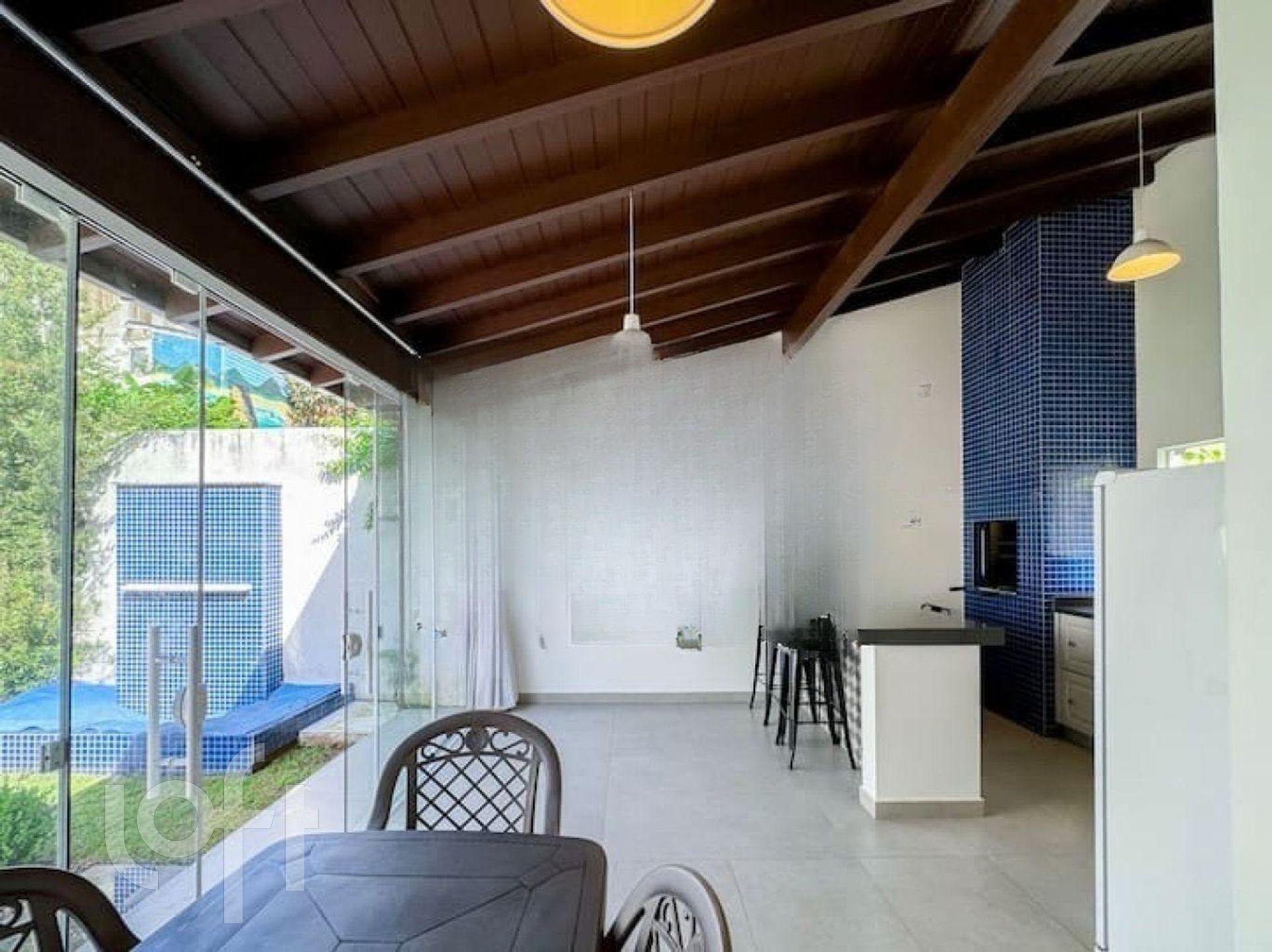 Dispõe de áreas como churrasqueira, lareira, fogo de chão ao lado do espaço gourmet, uma cascata e uma confortável sacada, perfeita para desfrutar de momentos de lazer.