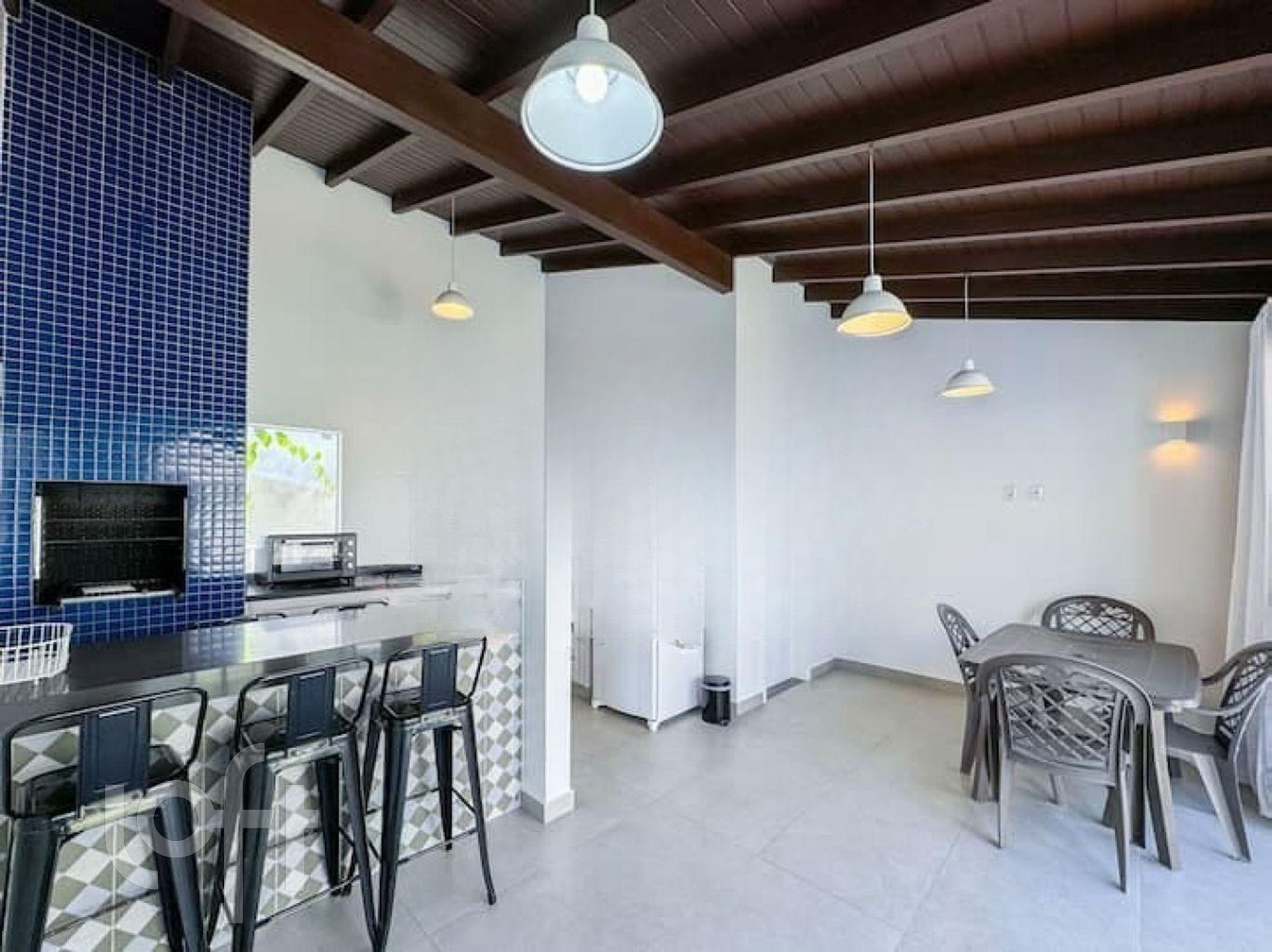 Dispõe de áreas como churrasqueira, lareira, fogo de chão ao lado do espaço gourmet, uma cascata e uma confortável sacada, perfeita para desfrutar de momentos de lazer.