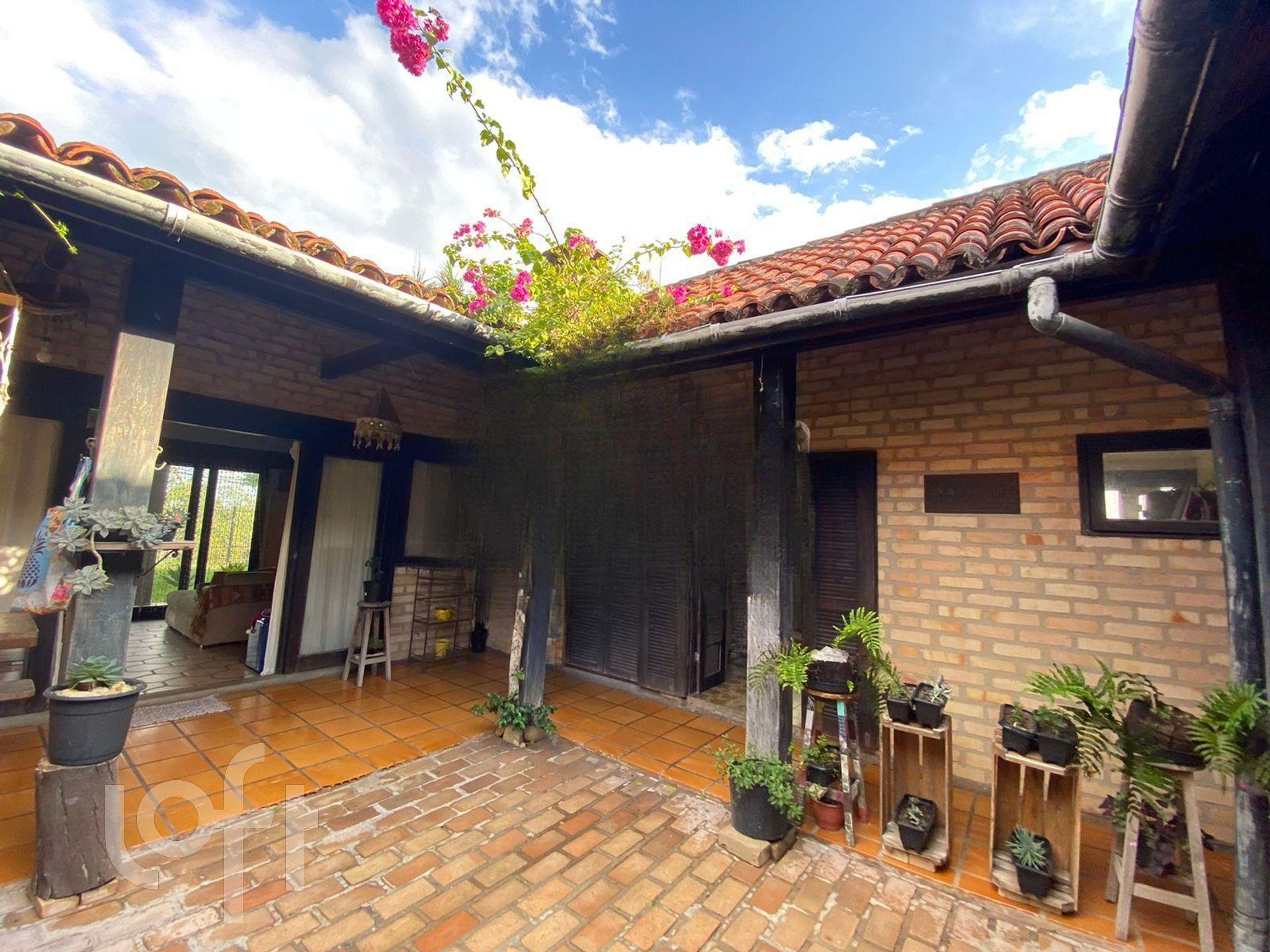 Imóvel com um belo jardim interno e com todos os cômodos saindo para o espaço aberto que fica na parte central da casa.