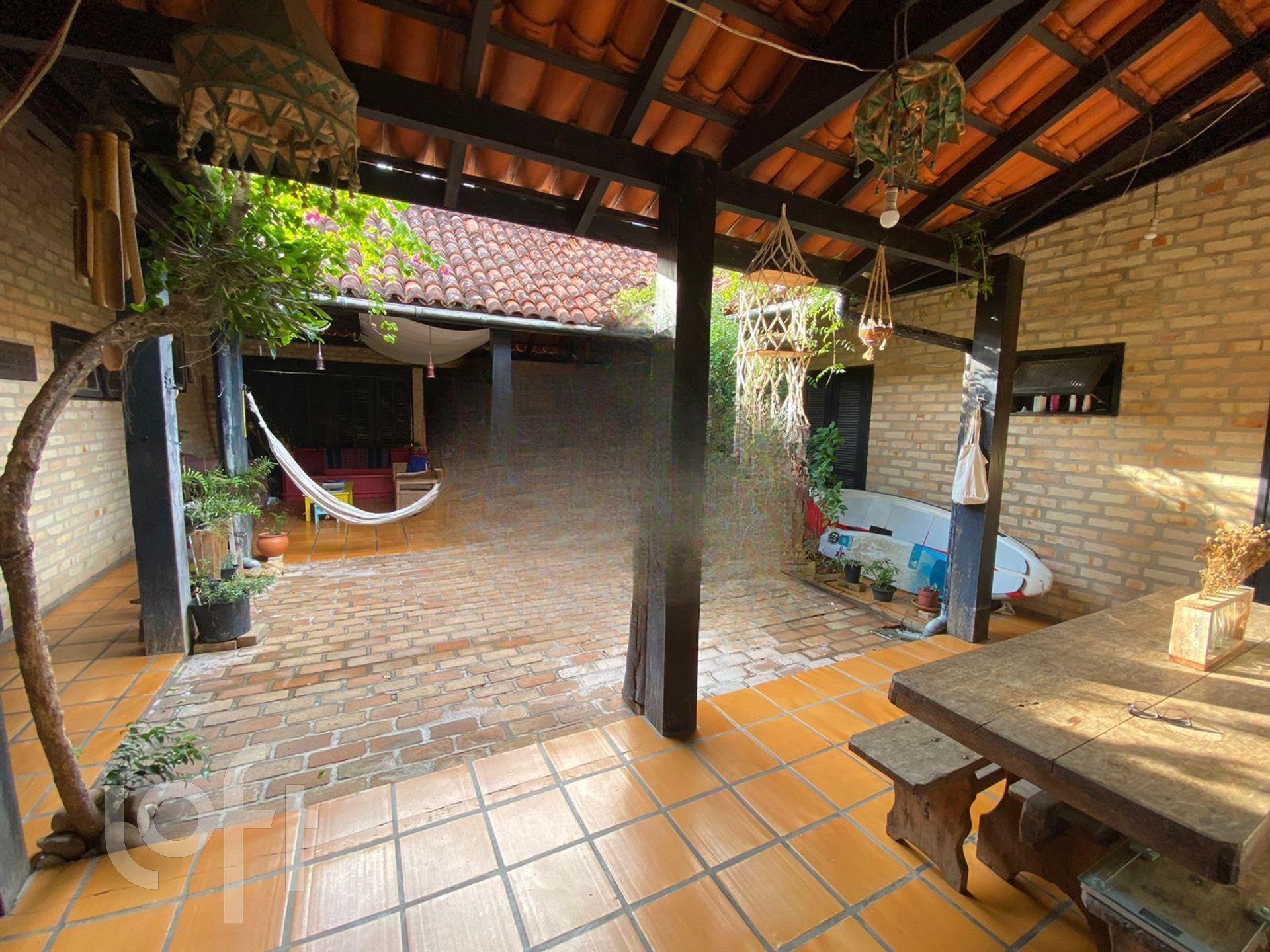 Imóvel com um belo jardim interno e com todos os cômodos saindo para o espaço aberto que fica na parte central da casa.