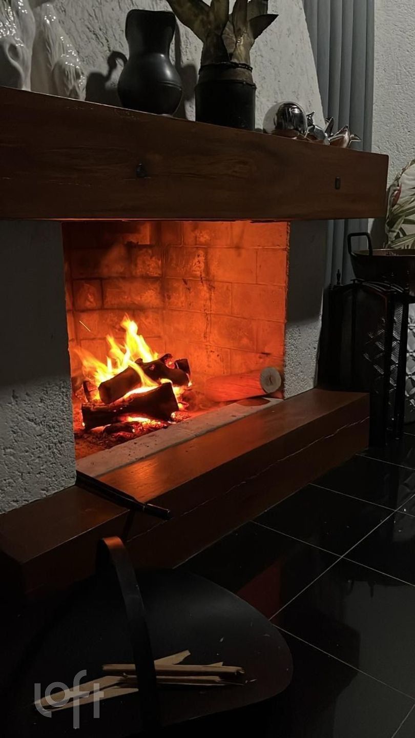 Sala de visita aconchegante com lareira, perfeita para noites acolhedoras em família.