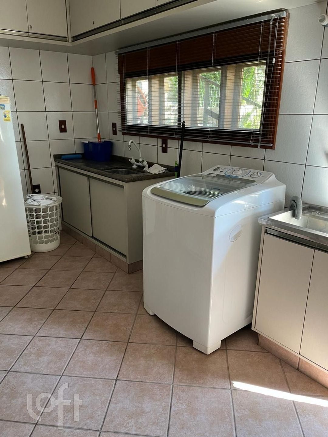 Uma ampla área de serviços com despensa e lavanderia.