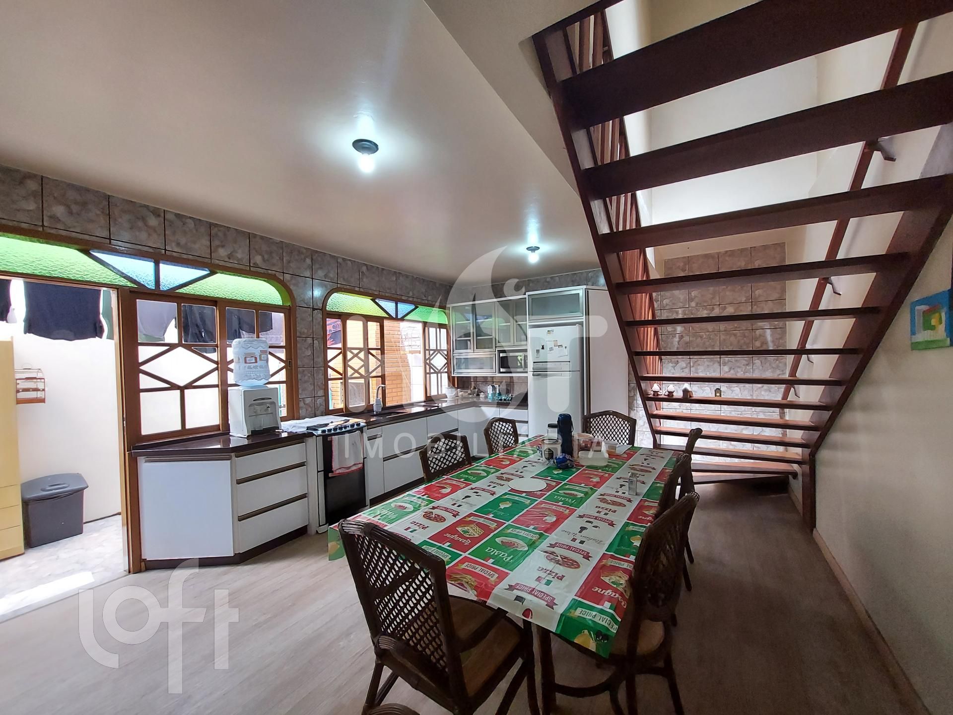 Casa principal tem 200m², 3 dormitórios, com varanda, 2 banheiros, cozinha, sala de estar, área de serviço, espaço gourmet com churrasqueira à carvão, garagem coberta para dois carros e um belo quintal arborizado, murado com portão eletrônico. Todos ambientes amplos e arejados com sol da manhã, para você que busca conforto, aconchego e segurança.