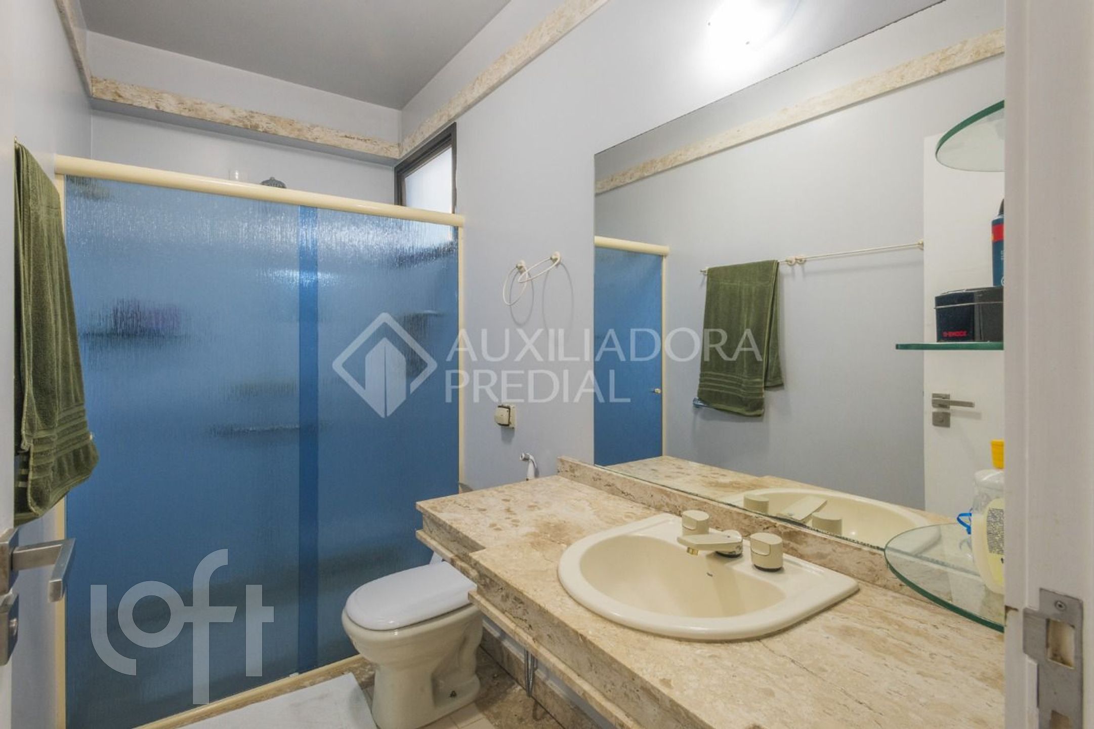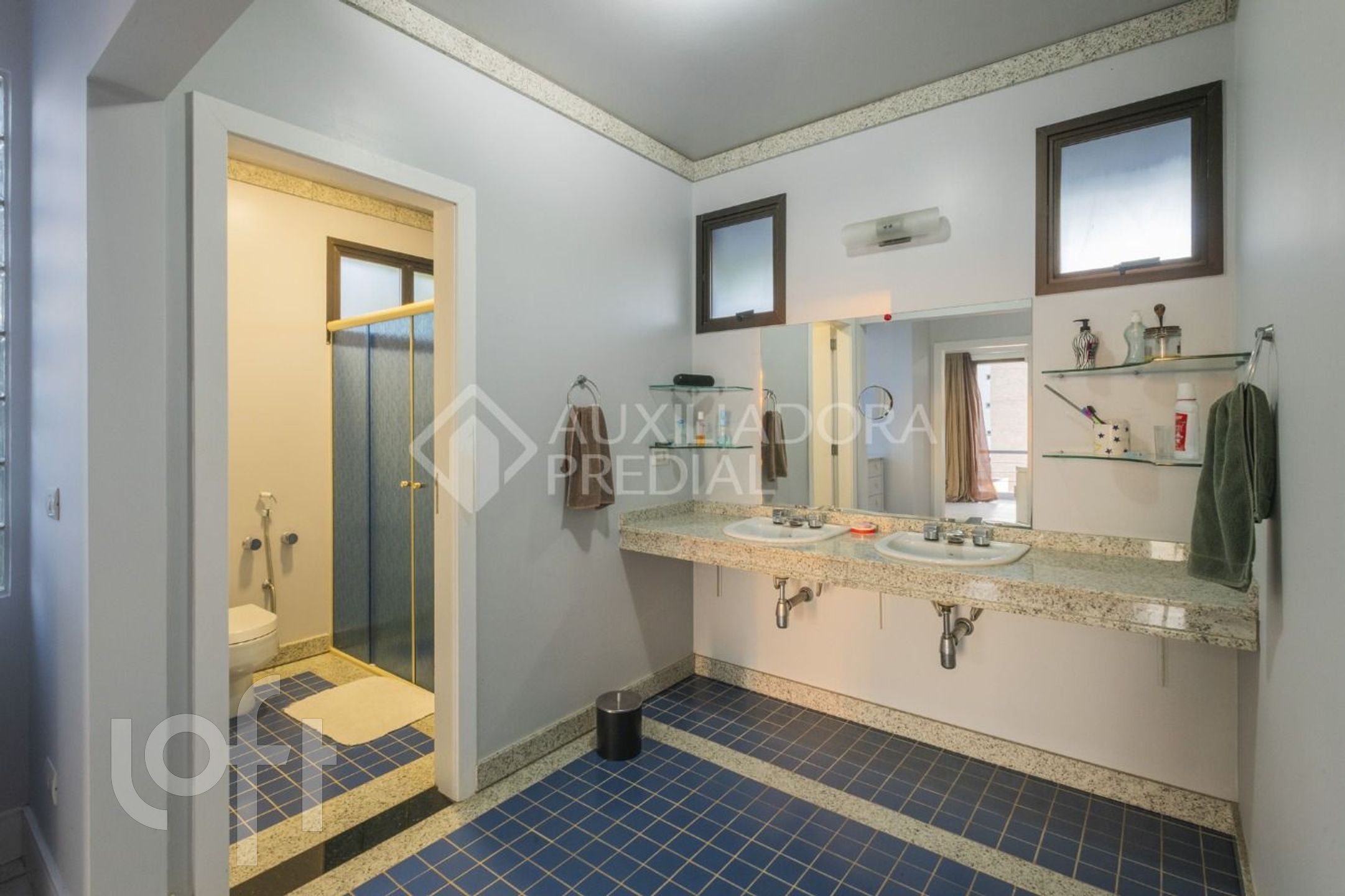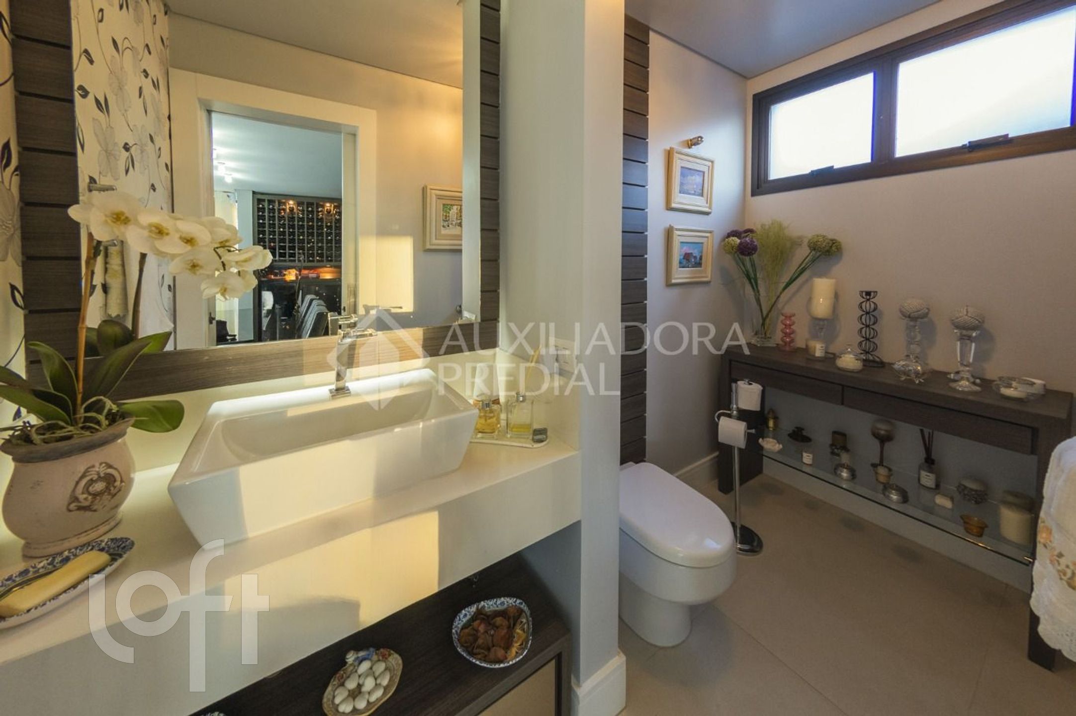 Cozinha com copa integrada e área de serviço com banheiro e dependência.