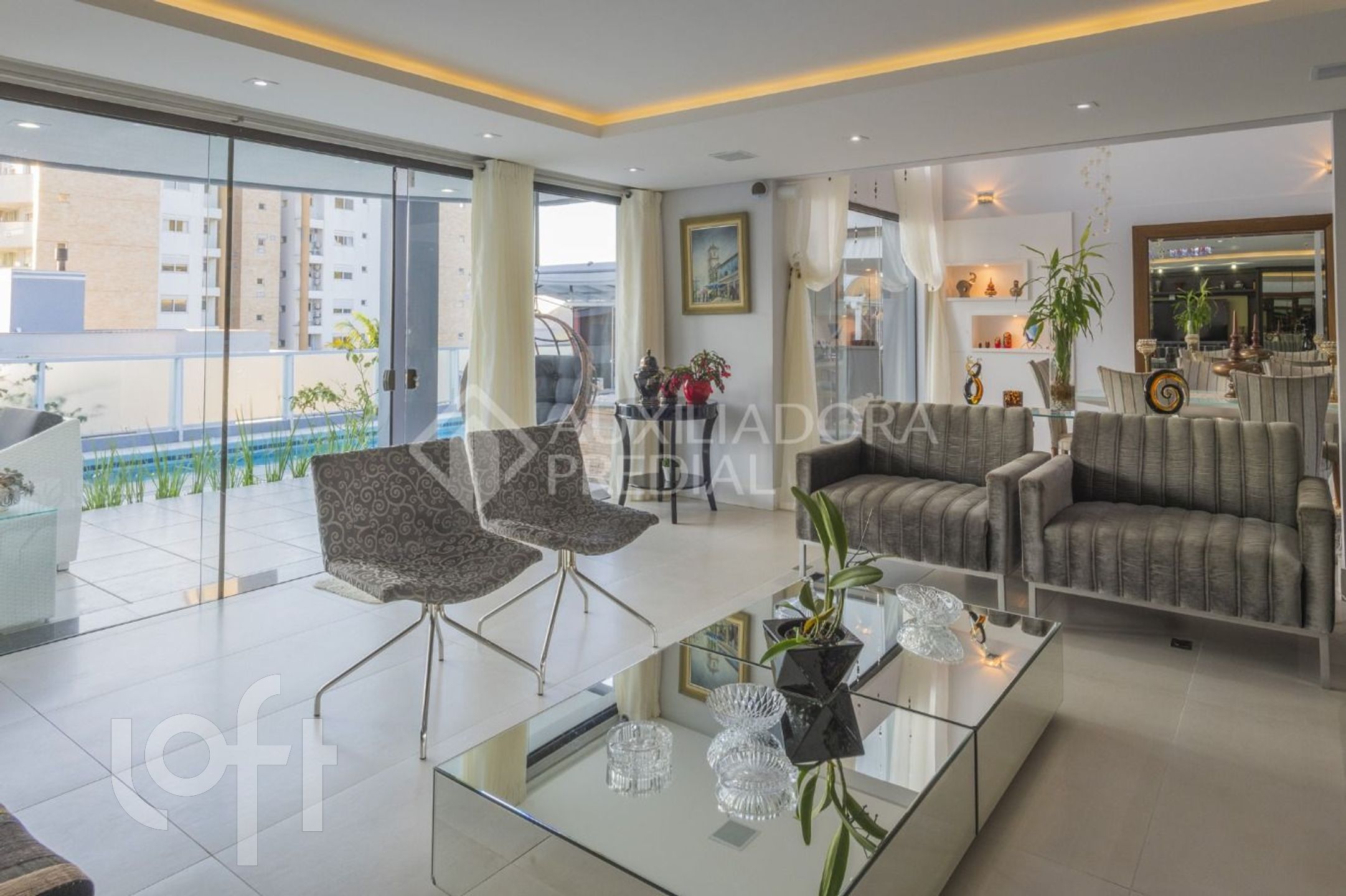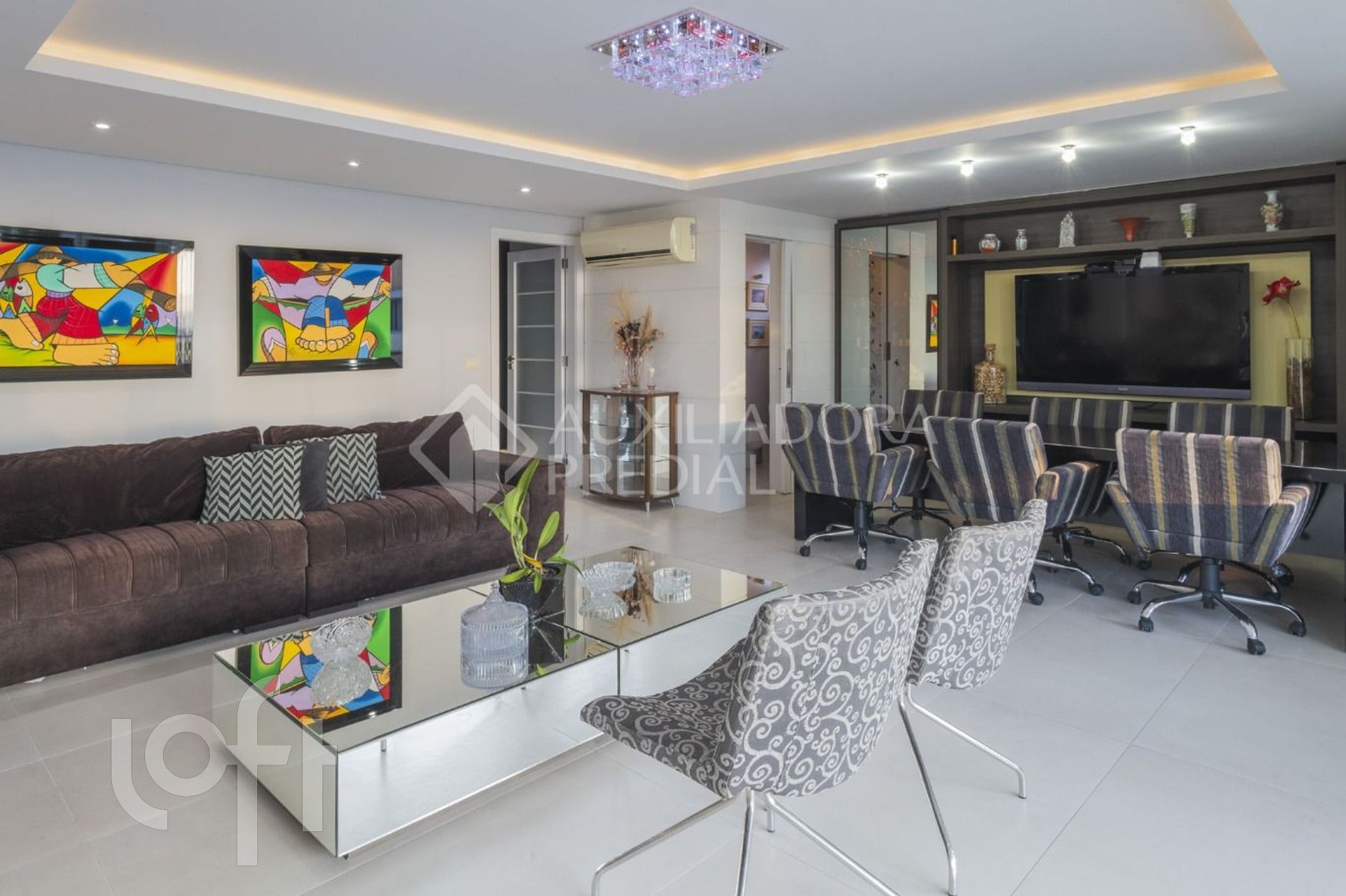 Ampla sala para 2 ambientes, sala de TV, espaço para home office e academia.