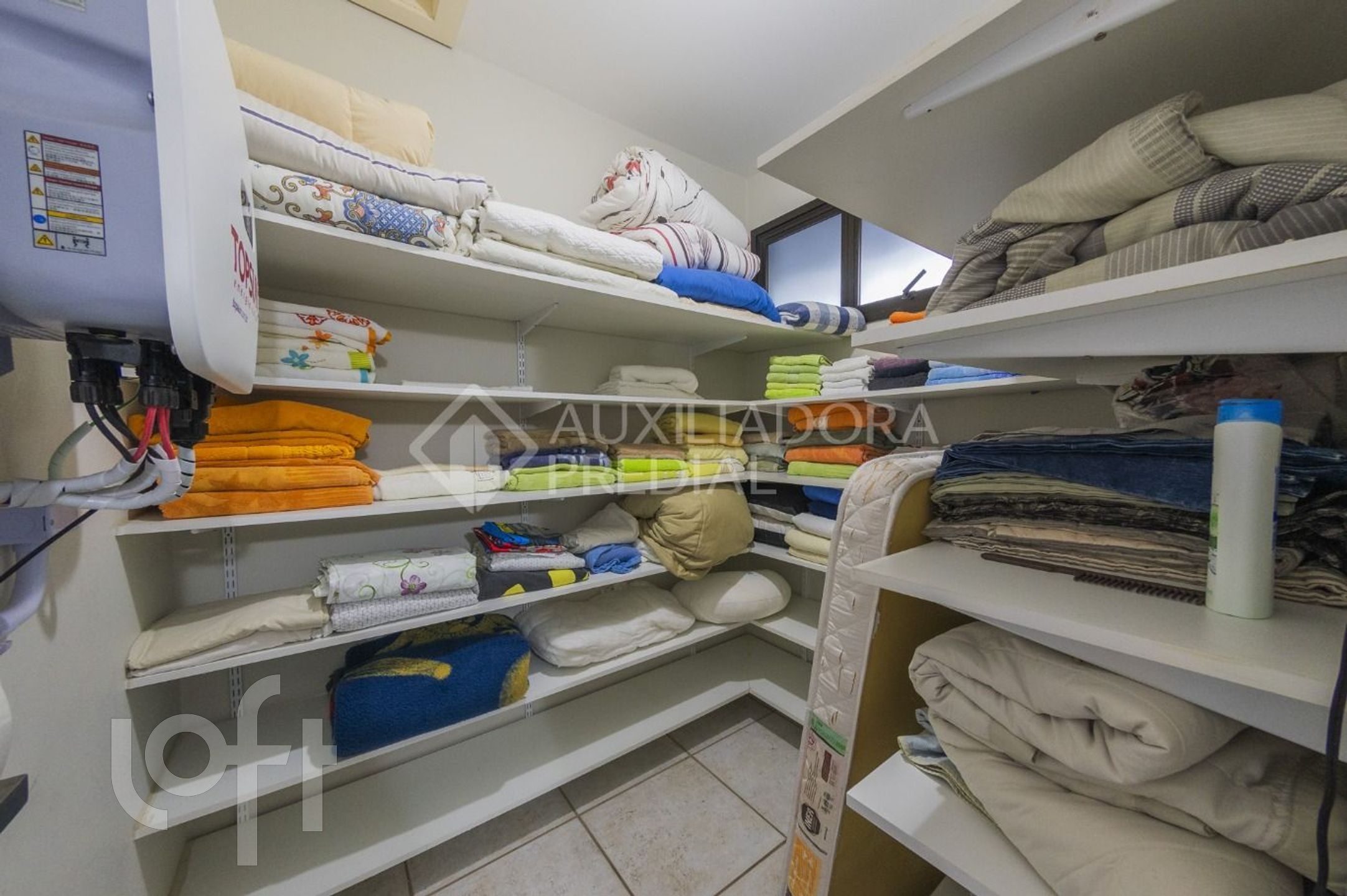 Cozinha com copa integrada e área de serviço com banheiro e dependência.