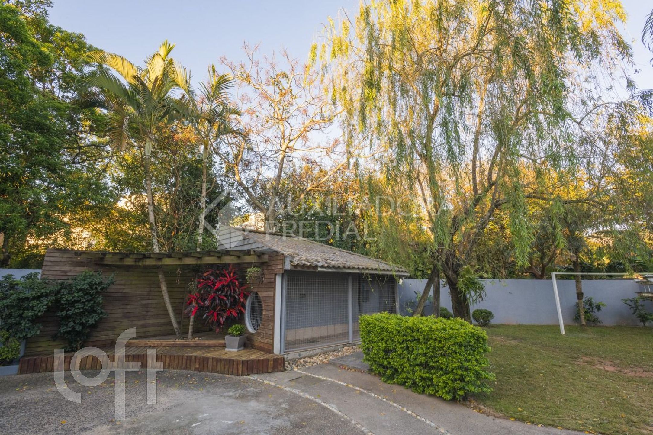 Canil, mini campo de futebol e amplo espaço para veículos.