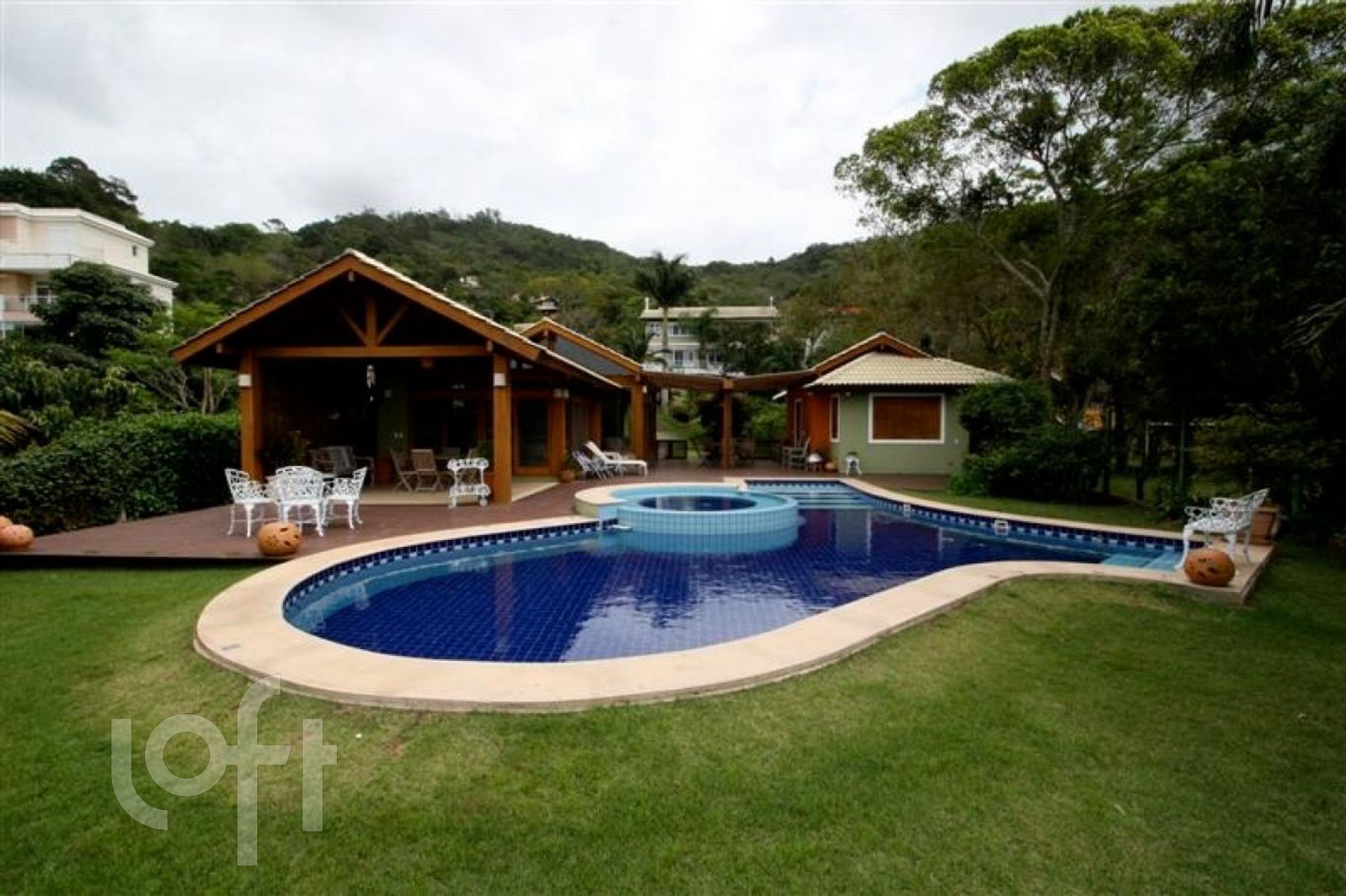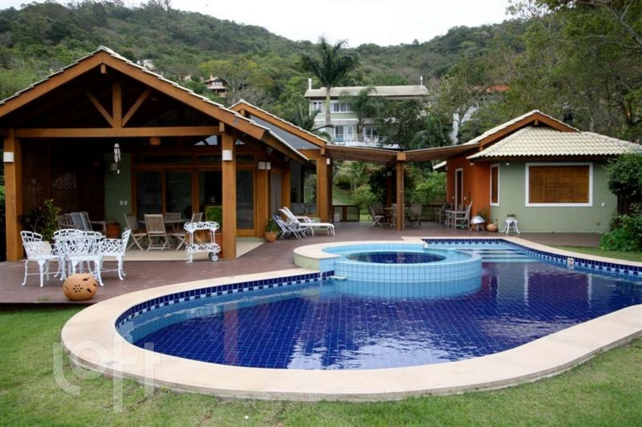 A segunda casa possui 2 quartos, 2 banheiros, uma sala e uma cozinha gourmet, equipado com uma churrasqueira, fogão e forno ambos a lenha. Deck, piscina, chuveiro externo e uma vista privilegiada da nossa Lagoa da Conceição. (Esta casa de hóspedes é perfeita para receber os amigos, e até realizar alguns eventos).
