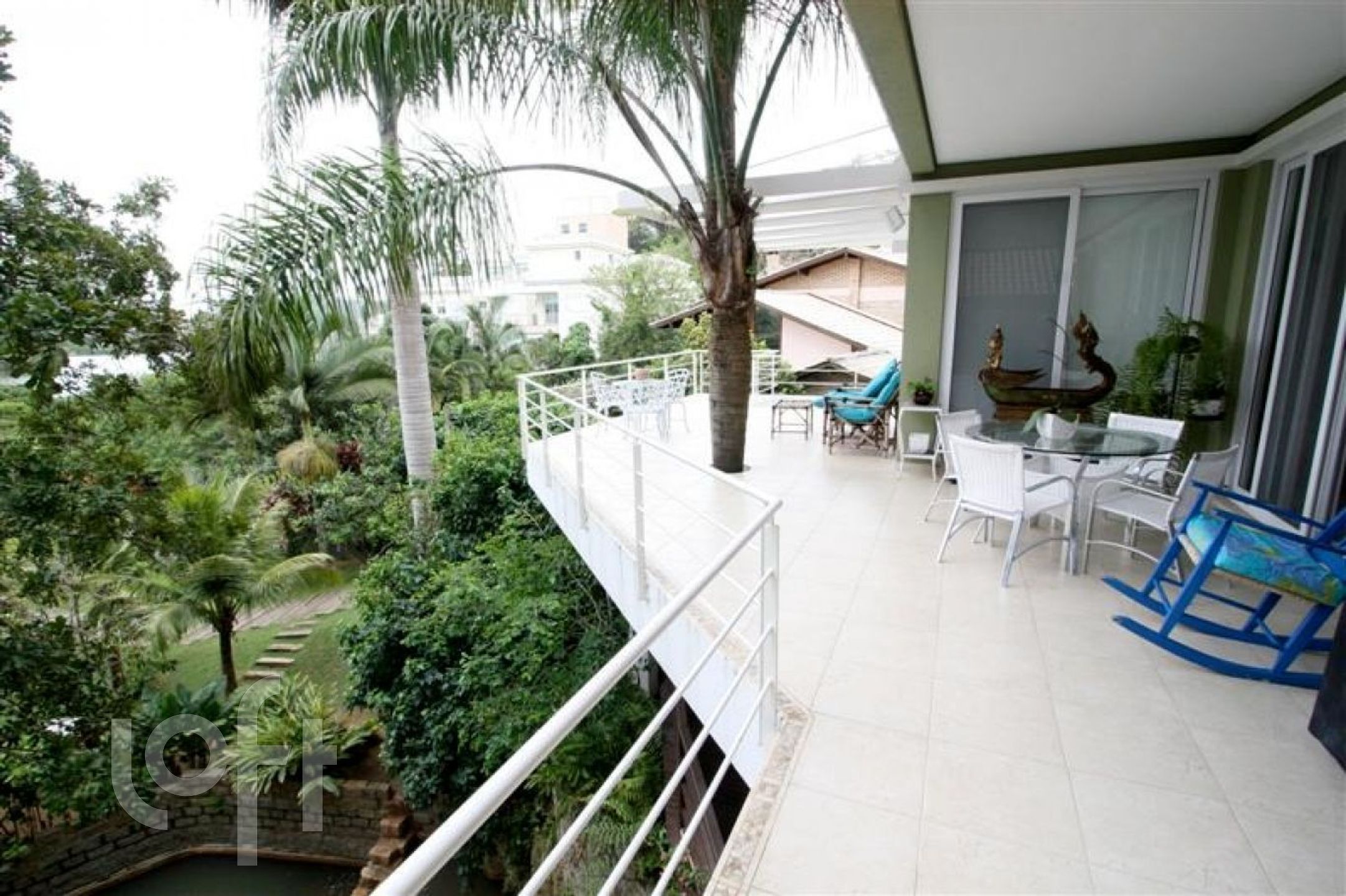 No terreno existem duas construções, a principal são três pisos. Entre as duas construções existe uma enorme diversidade de vegetação que contempla muitas palmeiras, árvores frutíferas e uma pequena cachoeira.