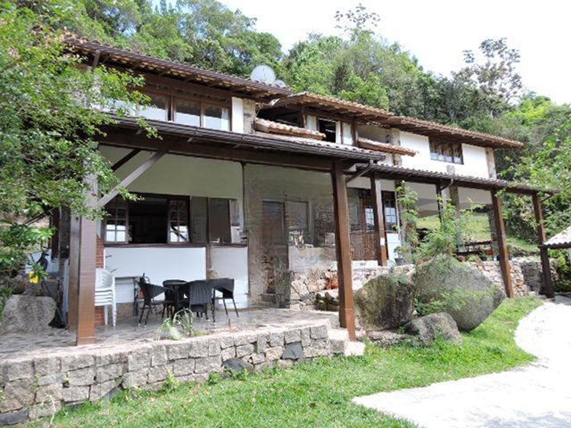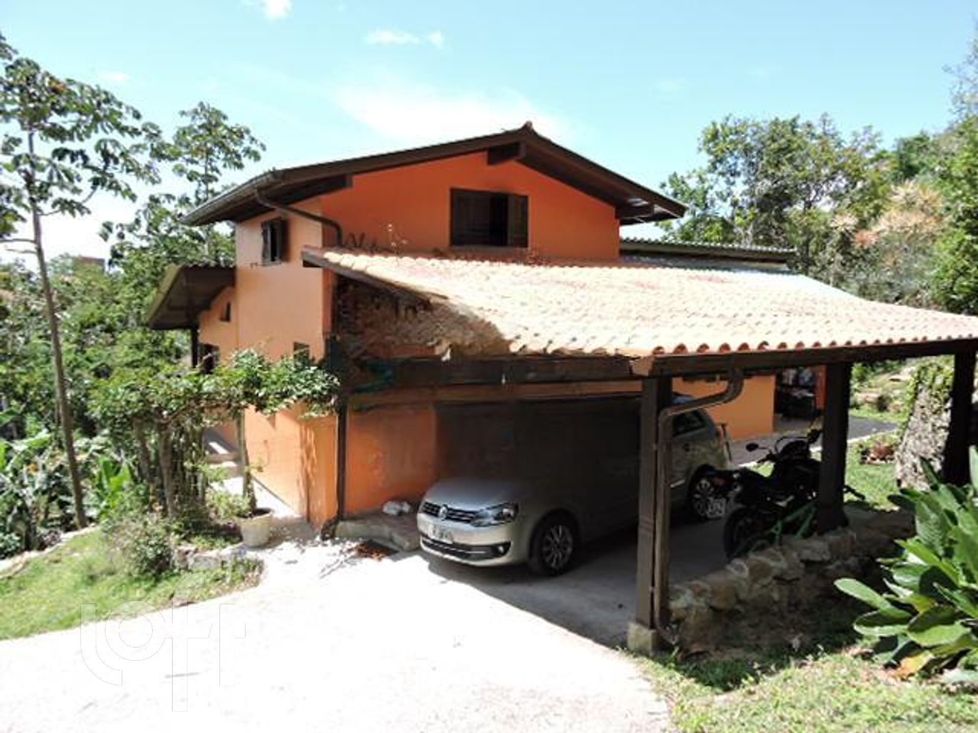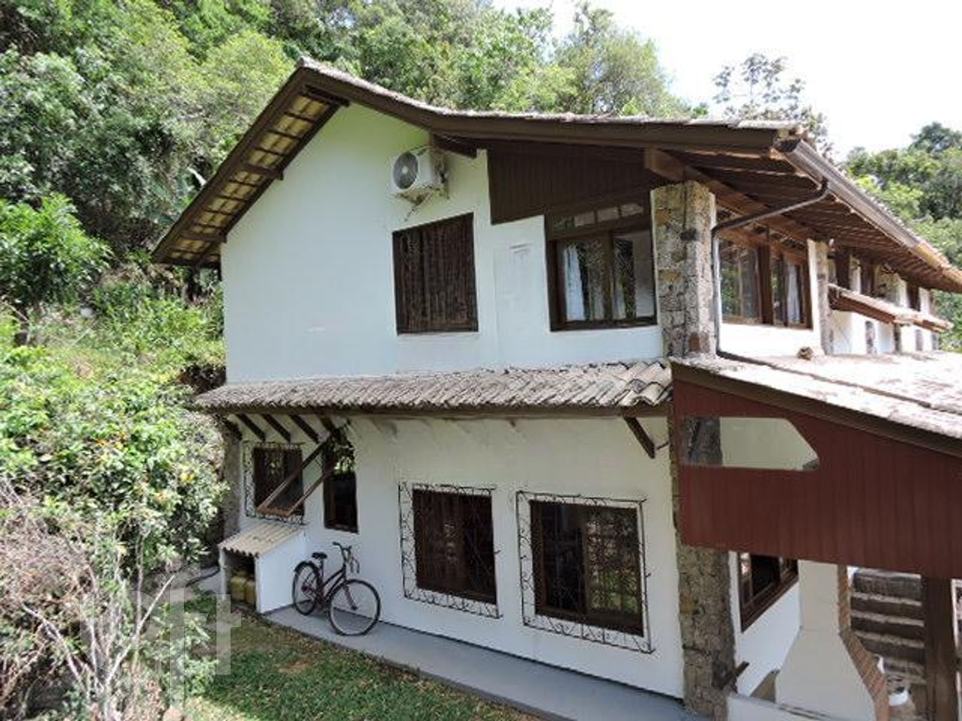 Belíssimo imóvel em meio a mata e total privacidade com 3 casas. A casa principal tem ótima vista Mar, ambientes amplos com 2 quartos, 1 suíte e living privativo, sala de estar, sala de jantar, BWC social, escritório/dormitório, cozinha, despensa, área de serviço, varanda com churrasqueira e 2 vagas de garagem coberta. Casa secundária com 1 quarto, 1 suíte e mezanino e mais um Studio, atualmente locado.