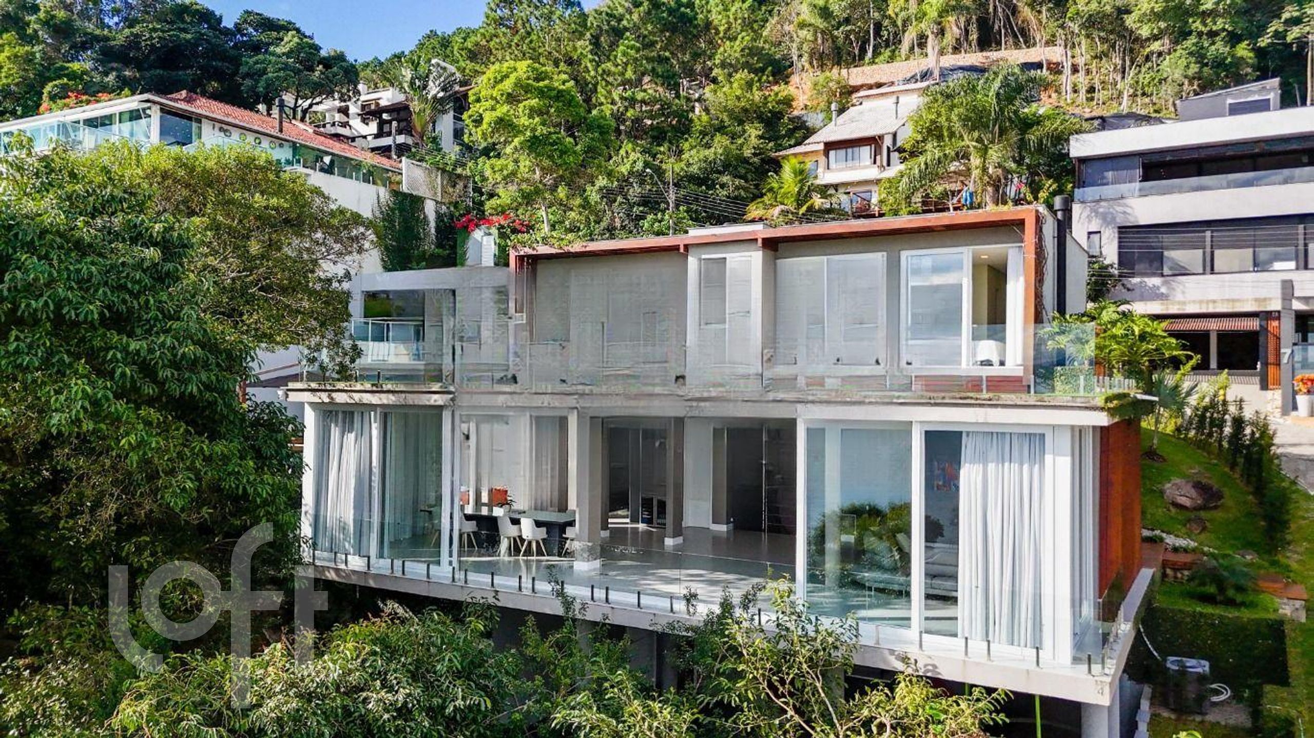 São 635m2 privativos em 2 terrenos que somam 900m2 distribuídos em 5 suítes, sendo a suíte master com sacada e closet, amplo living com lareira, lavabo, sala de estar, sala de jantar e sala de jogos, copa cozinha, churrasqueira, área de serviço. Academia e piscina aquecida com borda infinita privativas. Garagem para 8 carros.