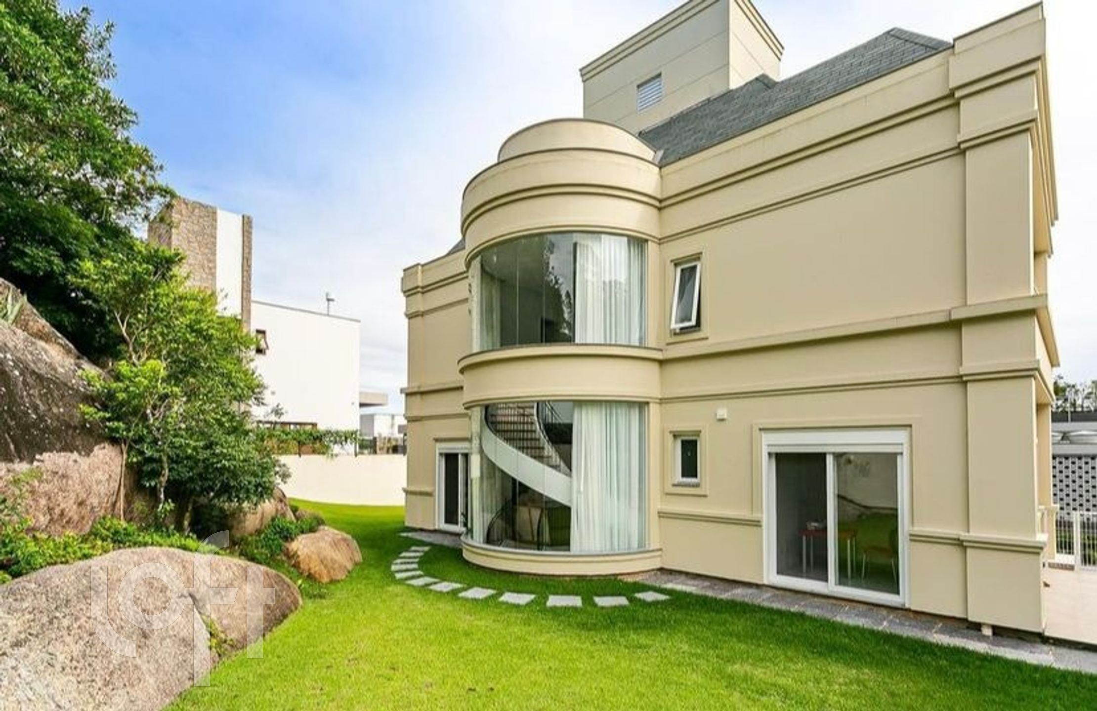 Linda casa alto padrão em estilo neoclássico, com 319 m² de área privativa em condomínio fechado, distribuídos em 4 suítes, sendo 2 suítes Master com closet e hidromassagem, mais uma suíte de hóspedes no andar superior, todas com vista para o mar, interligas por hall de acesso. No térreo, mais uma suíte de hóspedes, cozinha com móveis planejados, ilha em granito, integrada com a sala de jantar, de estar e de tv com espera para lareira a gás. Em torno de 300 m² de espaço de jardim, escada artesanal em caracol com madeira nobre interligando a garagem e os andares térreo e superior, com espera para elevador a vácuo Elevac , terreno com 513 m² de área privativa, fazendo divisa com área verde proporcionando mais privacidade e ótima posição solar. PRINCIPAIS DIFERENCIAIS DO IMÓVEL: – PISO ÁREA ÍNTIMA SEGUNDO PAVIMENTO COM PISO VINÍLICO padrão Amêndola. – PISO SOCIAL LINHA DA ELIANE 90X90 – ESQUADRIAS AUTOMATIZADAS em PVC REHAU, com tela mosquiteira em todas as janelas. – AQUECIMENTO SOLAR COM PLACAS DE ÚLTIMA GERAÇÃO, A VÁCUO. – EXCELENTE POSIÇÃO SOLAR! CAIXA D’ÁGUA auxiliar de 5.000 LITROS, mais caixa principal de 2.000 LITROS. REAPROVEITAMENTO ÁGUA DE CHUVA para uso no jardim. CASA NOVA, Construção finalizada em Dezembro de 2019. PORTARIA COM SEGURANÇA 24 HS – Condomínio conta com alto padrão de casas já construídas, com apenas 18 lotes.